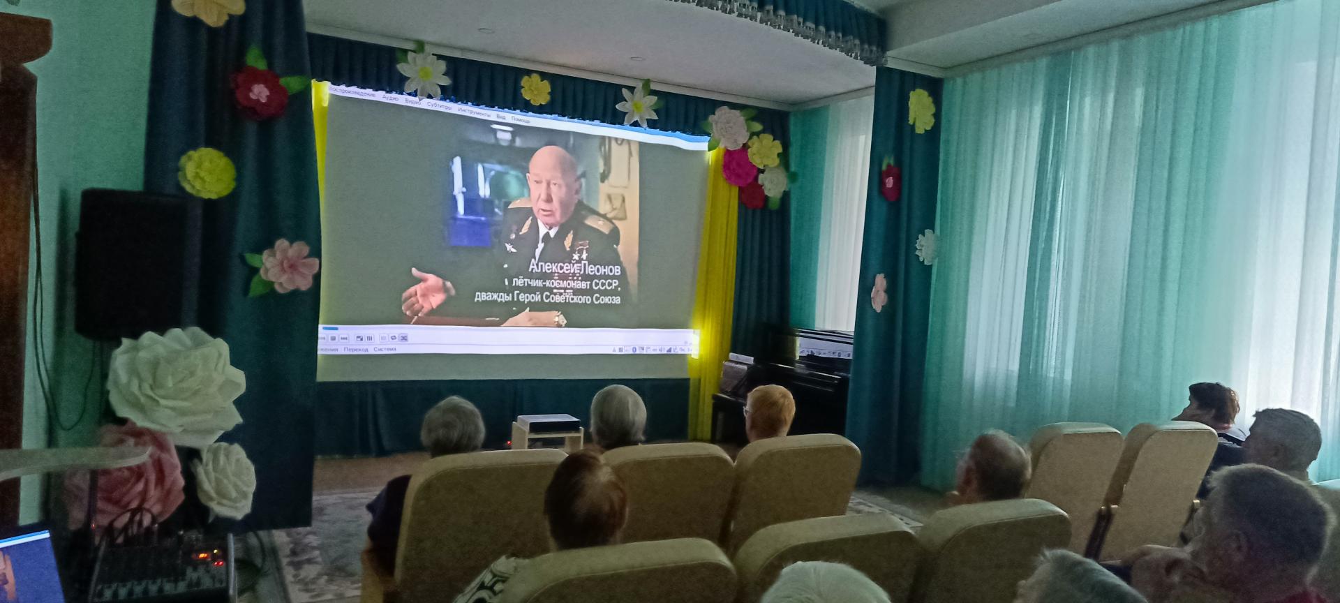 В рамках клуба «Документальная среда» для жителей пансионата прошел час истории, который был посвящен 90-летию Алексея Леонова. Алексей Архипович Леонов, советский космонавт, дважды Герой Советского Союза, совершил первый выход человека в открытый космос, участник двух космических экспедиций. Как человек советский, он верил в науку, разум, прогресс, достижения цивилизации. Как человек русский, он верил в Бога, строил храмы, писал иконы. Памяти космонавта, вся жизнь которого стала подвигом, посвящается документальная лента режиссера Ивана Цыбина «По самому краю», которую и посмотрели жители пансионата. Картина освещает события 1965-1975 годов ― подготовку Леоновым группы космонавтов для полета на Луну и участие в первой стыковке космических кораблей разных стран ― «Союз-19» (СССР) и Apollo (США). Кинолента основана на эксклюзивном интервью Героя Советского Союза, записанном его дочерью Оксаной Леоновой незадолго до ухода отца.