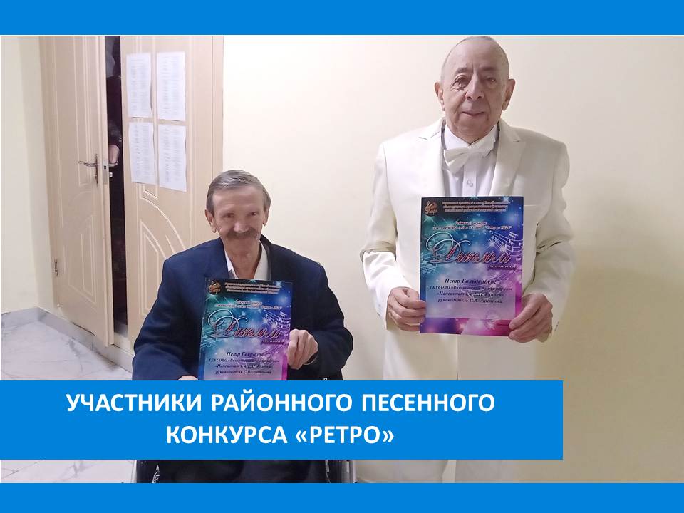 Среди конкурсантов – жители Вязниковского Пансионата. Пётр Гольденберг представил одну из любимых своих песен – «Малиновый звон», а Пётр Гаврилов выбрал «Травы, травы». Желаем им удачи!