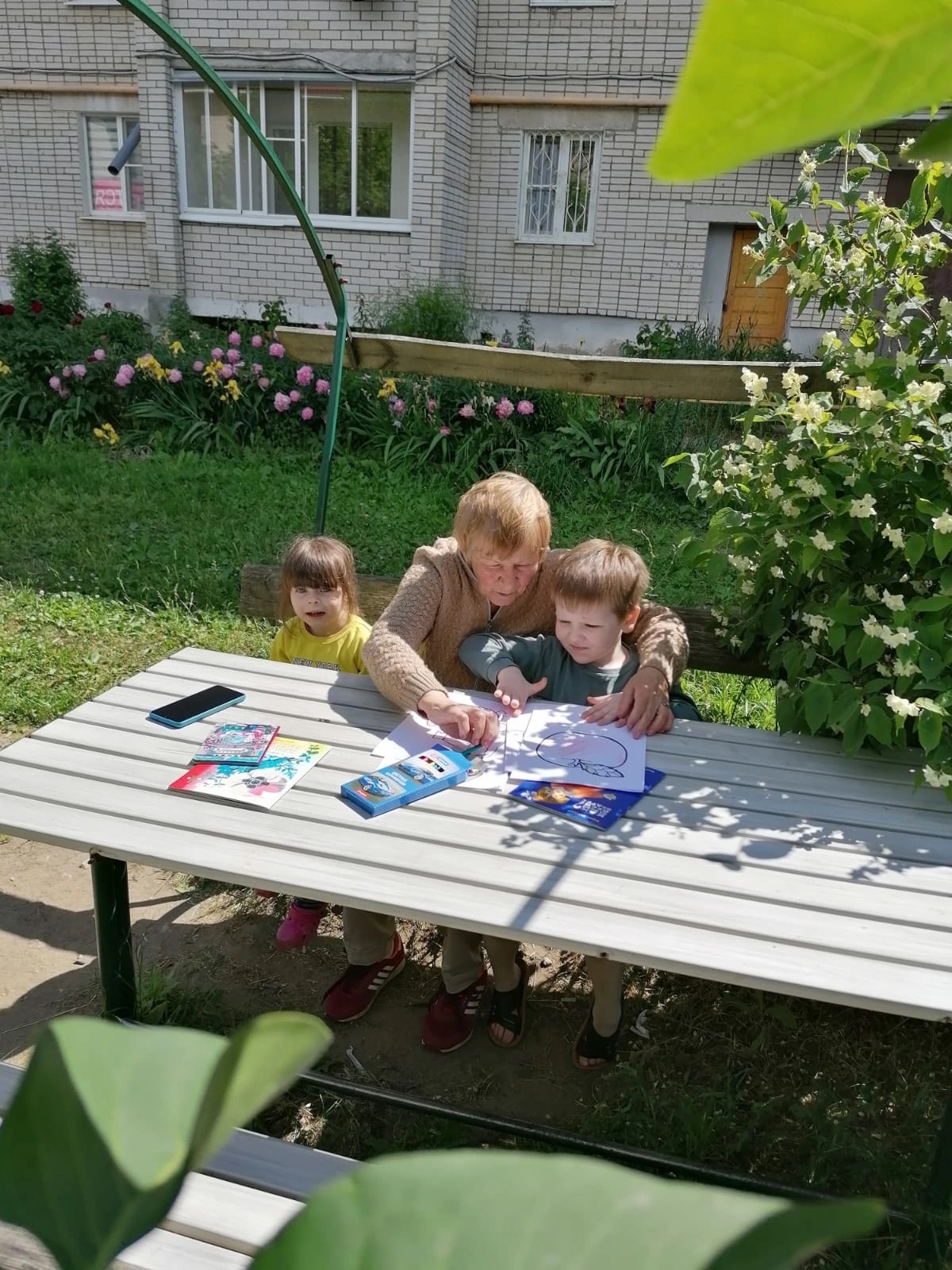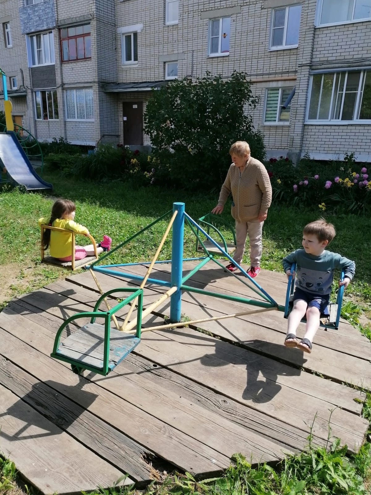 Встреча проходила на свежем воздухе, появление «бабушки на час» помогло всем сразу: родители получили свободное время, дети — интересного человека рядом. Дети отнеслись с интересом ко всему, что предложила им Людмила Геннадьевна – вместе почитали новую книжку, разукрашивали картинки, играли. На площадке ребята с большим желанием покатались с горки, на карусели, вволю набегались, и везде рядом с ними была Людмила Геннадьевна. За интересными играми, время пролетело быстро, но новые встречи впереди.