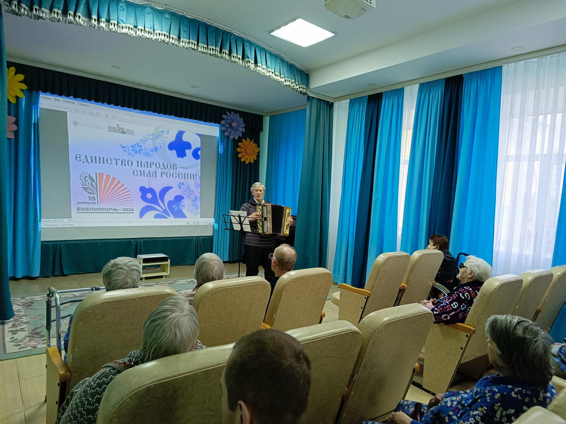 Жителям пансионата была предложена познавательно-развлекательная программа «Культура объединяет народы», все вместе они совершили путешествие с остановками на Чукотке, Крайнем Севере, Башкирии, Удмуртии, Донецке и Кавказе. Это был не просто вечер в библиотеке, а праздник, на котором звучали любимые стихи и музыка, в том числе и в исполнении жителей пансионата. Мероприятие расширило кругозор и сформировало чувство гордости за многонациональное наследие России.