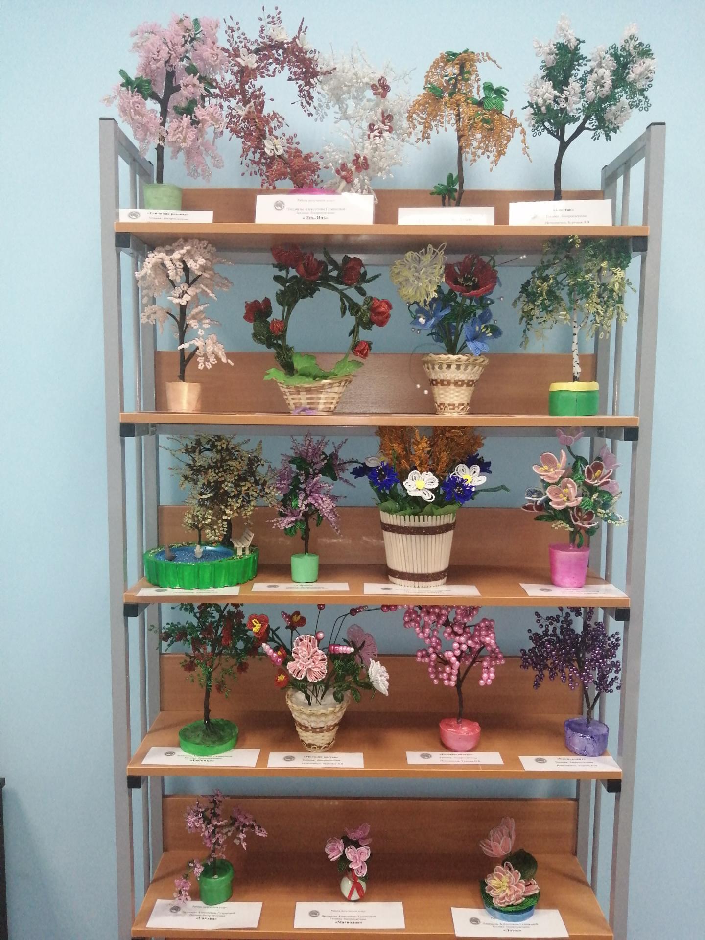 Работы из бисера, выставленные на нашей выставке – это маленькие произведения искусства, которые точно передают естественную природную красоту настоящих цветов и деревьев.