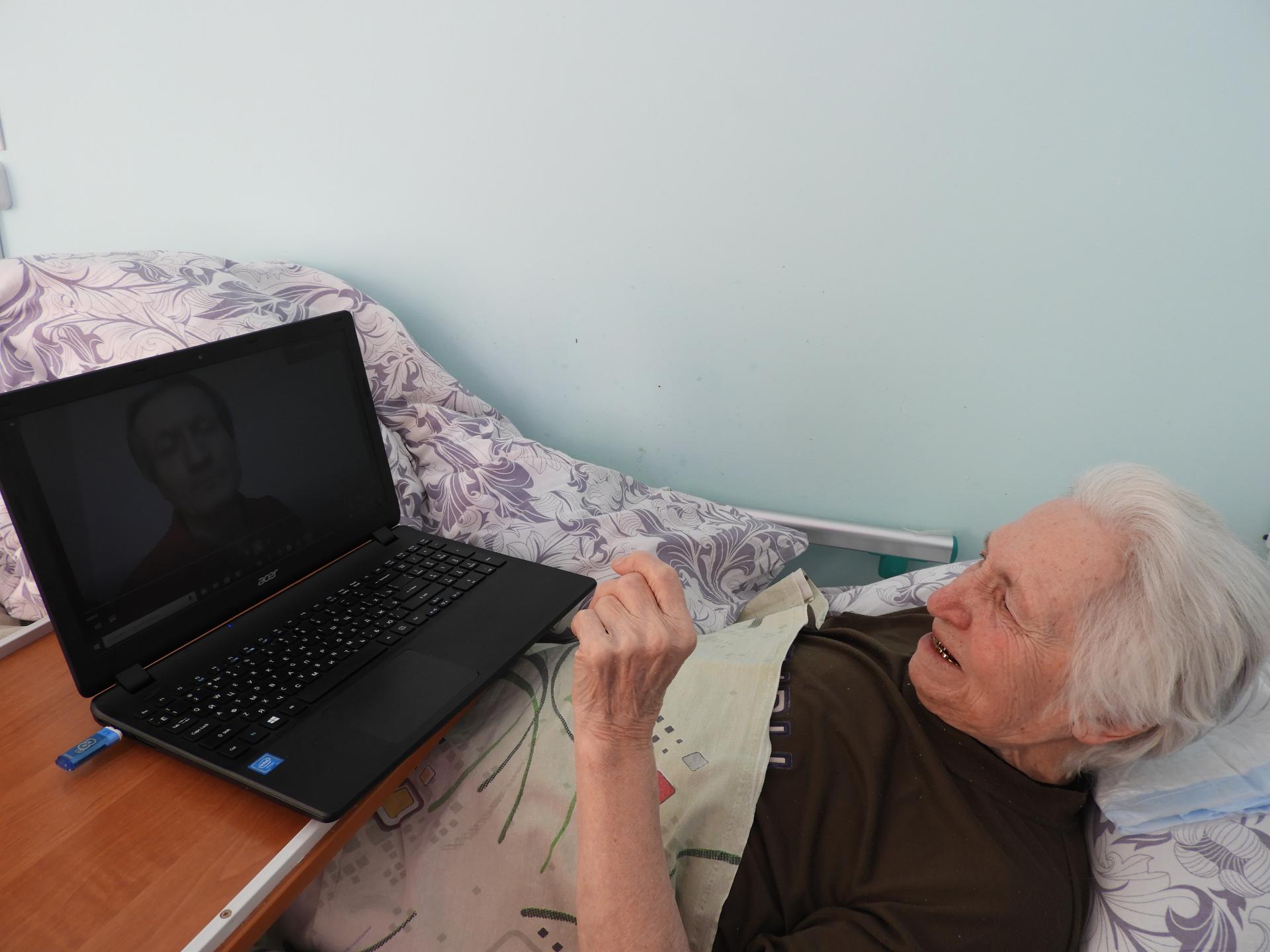 Сегодня такую весточку от близких получила жительница  Пансионата  Федорова Лидия Григорьевна. Видео письмо из Санкт - Петербурга от сына принесло ей много радости и спокойствие за близких.