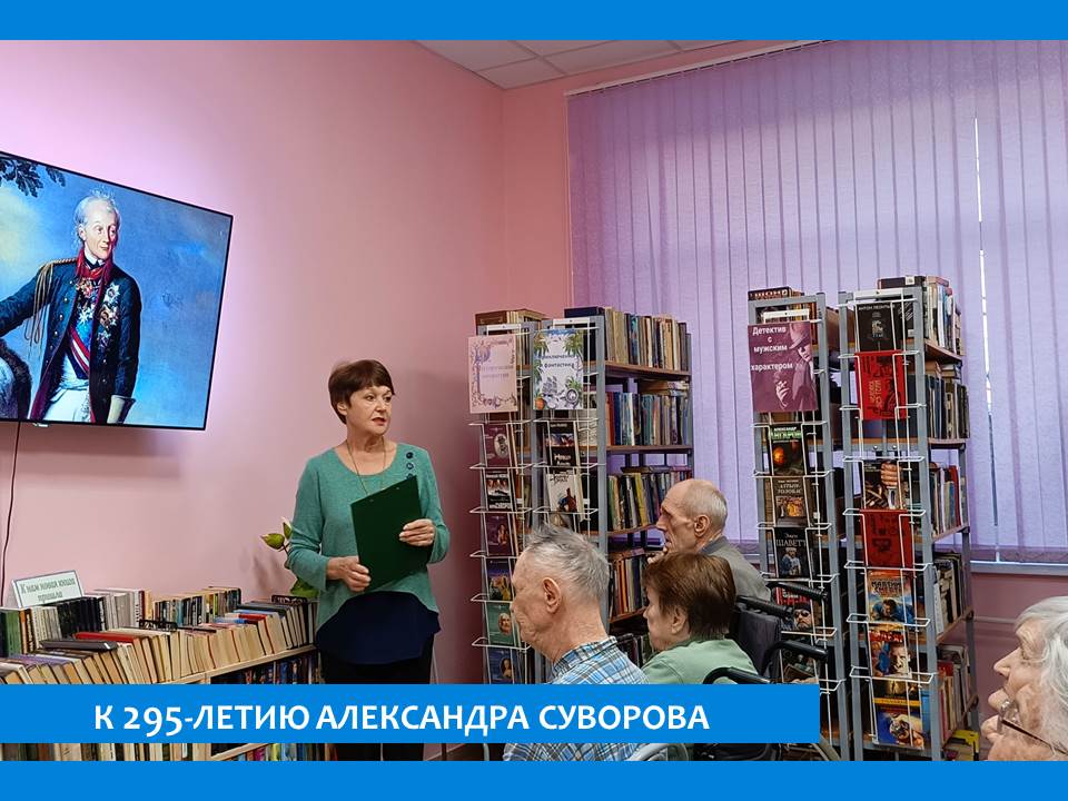 24 ноября отмечается 295-летие со дня рождения Александра Васильевича Суворова. К этой знаменательной дате в библиотеке пансионате прошел исторический час в рамках клуба «Документальная среда». Суворов не проиграл ни одного сражения. Он является обладателем всех русских военных орденов того времени, а также многих иностранных наград. А слова великого полководца: «Мы русские, мы все одолеем!» не потеряли актуальности и сегодня. Завершилось мероприятие просмотром документального фильма «Полководец».
