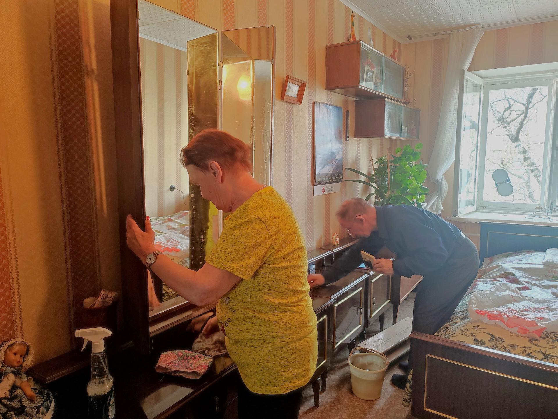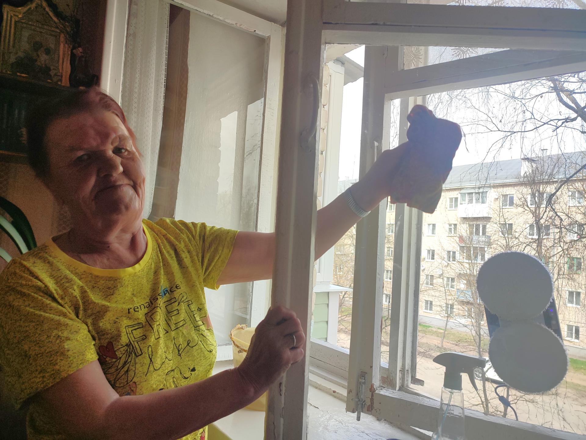 Приветливая хозяйка была очень рада такому визиту серебряных волонтеров. Сначала они освободили окна от цветов и зимнего утепления, затем приступили к мытью. А между делом протерли ещё комод и зеркала. За работой и интересными разговорами не заметили, как пролетело время. Муза Дмитриевна отметила, что в квартире прямо дышать стало по-весеннему.