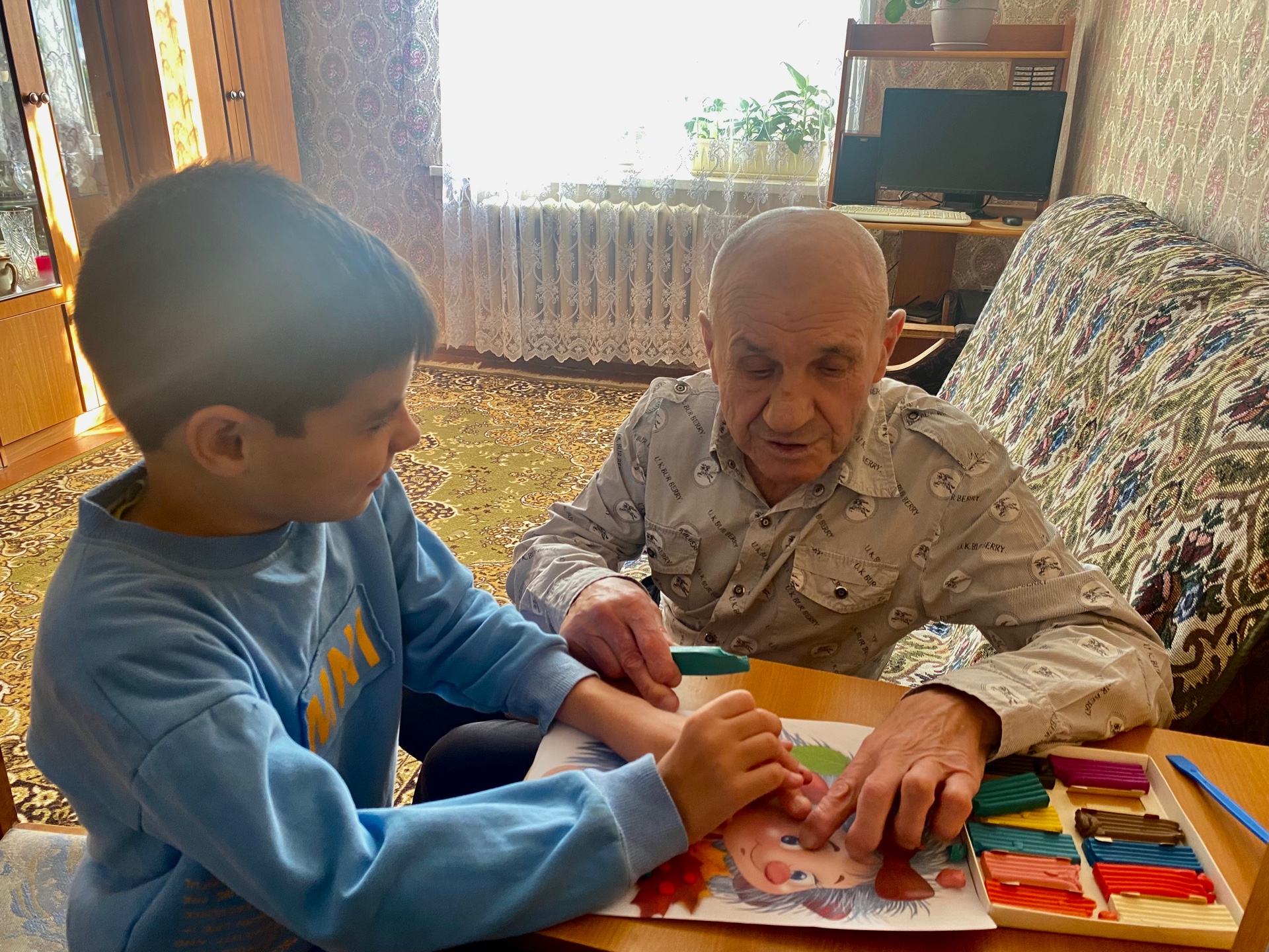 Серебряный волонтёр, проживающий в Пансионате, Лебедев Александр Алексеевич решил себя попробовать в качестве «дедушки на час». Он посетил семью, находящуюся на патронаже в Вязниковском комплексном центре социального обслуживания населения. Появление дедушки (а не бабушки), хоть и удивило маму, но не смутило и позволило ей спокойно заняться своими домашними делами, не переживая о том, что ребенок останется без присмотра. Тимофей, милый скромный мальчик, был рад всему, что приготовил для него Александр Алексеевич. Они вместе читали сказки, лепили, смеялись, дарили радость и улыбки друг другу. В жизни многих детей дедушка, в первую очередь, - учитель, иногда с юмором, иногда строгий, но всегда запоминающийся. За интересным общением время пролетело незаметно и быстро, но радует то, что новые встречи еще впереди.