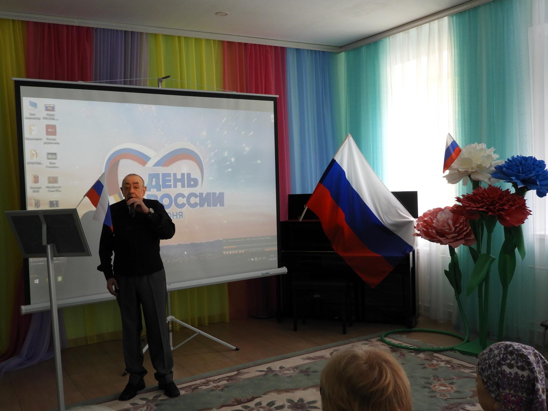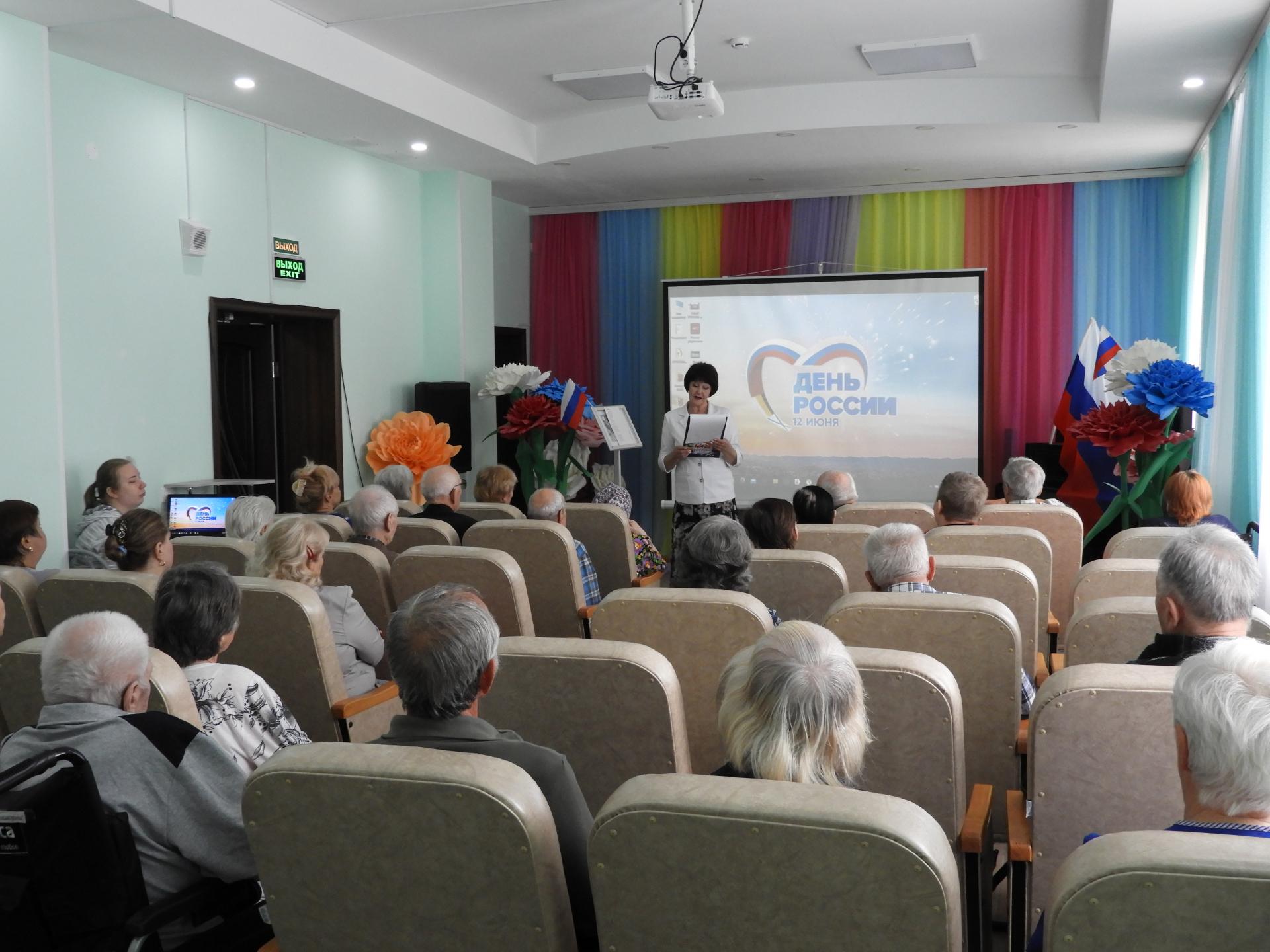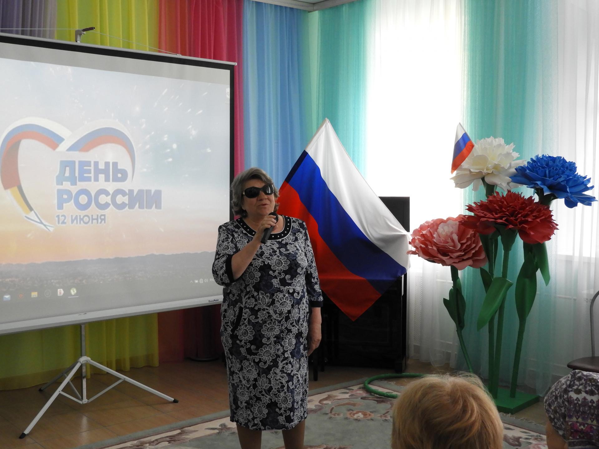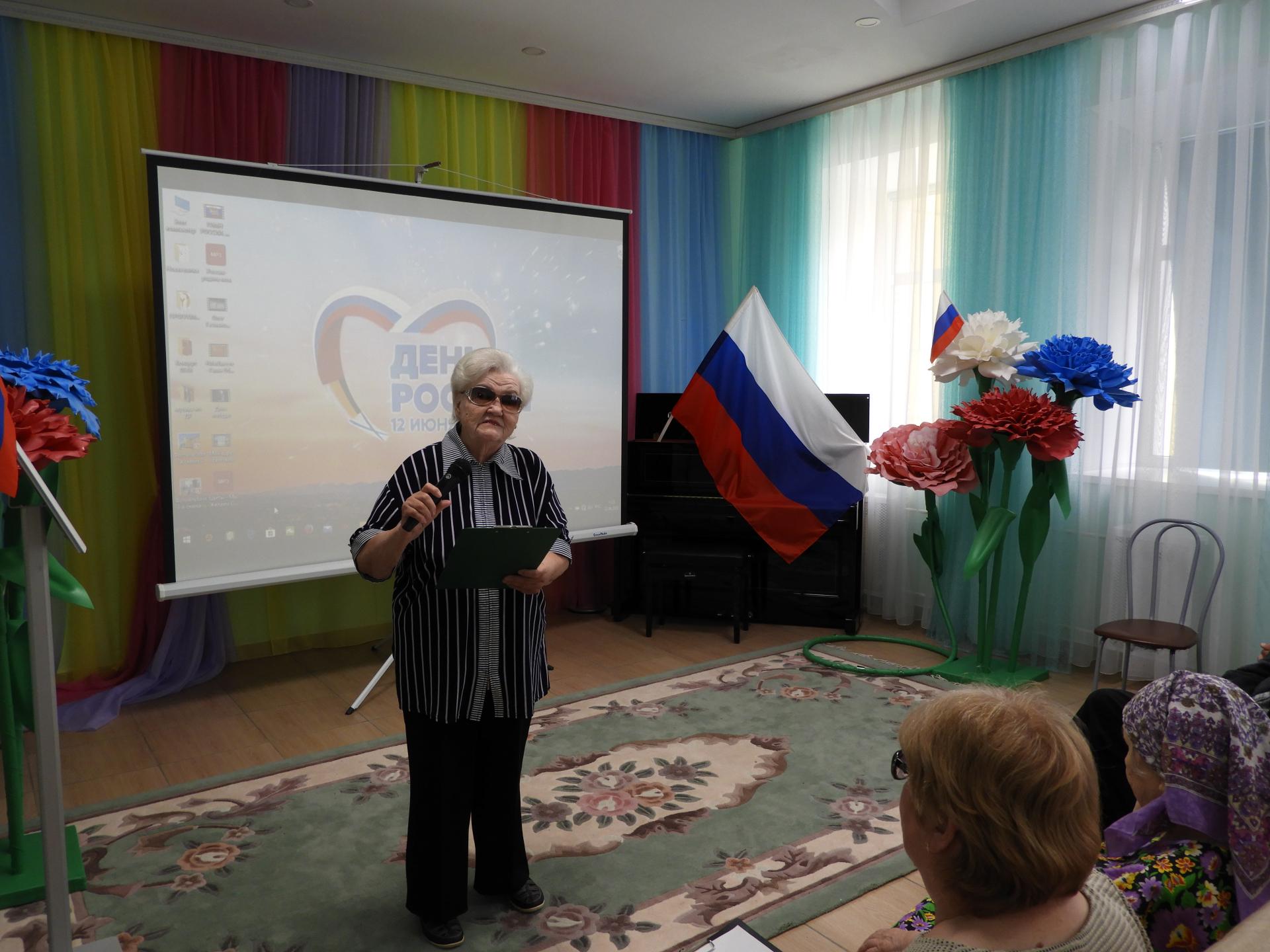 День России - 12 июня - главный праздник нашей страны, ознаменовавший начало новейшей истории и государства Российская Федерация. В этот день по всей стране проходит множество торжественных и праздничных мероприятий. Жители Пансионата приняли активное участие в праздничной программе «Горжусь тобой, моя Россия!», посвященной Дню России. В ходе мероприятия звучало много красивых стихотворений и песен о России в их исполнении.