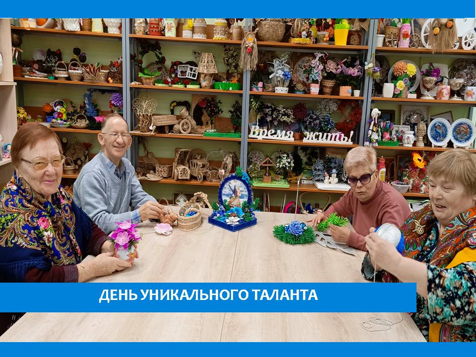 И не говорите, что его у вас нет ! 24 ноября – День вашего уникального таланта. Каждый человек в чем-то уникален. И наверняка есть что-то, что получается у вас просто замечательно! Расскажите, что вы умеете делать лучше всего? В чем ваш уникальный талант? Многим сейчас захочется ответить: «Нет, да что вы, нет во мне ничего уникального». Так вот, этот день для того и придуман, чтобы наконец присмотреться и заметить свой собственный, уникальный талант )) Загляните к нам в пансионат и вы поразитесь наличием талантливых людей! Здесь и бисероплетение. Накопилась пряжа, вот вам картины! Мужчины с радостью выпиливают и выжигают! Вот скоро повезет новогодней елке, украшения почти готовы! Как здорово, что есть разные мастер-классы для взрослых и детей, вот и наши мастерицы из клуба «Созвездие» проводят занятия с детьми, вовлекая их в замечательный мир рукоделия!