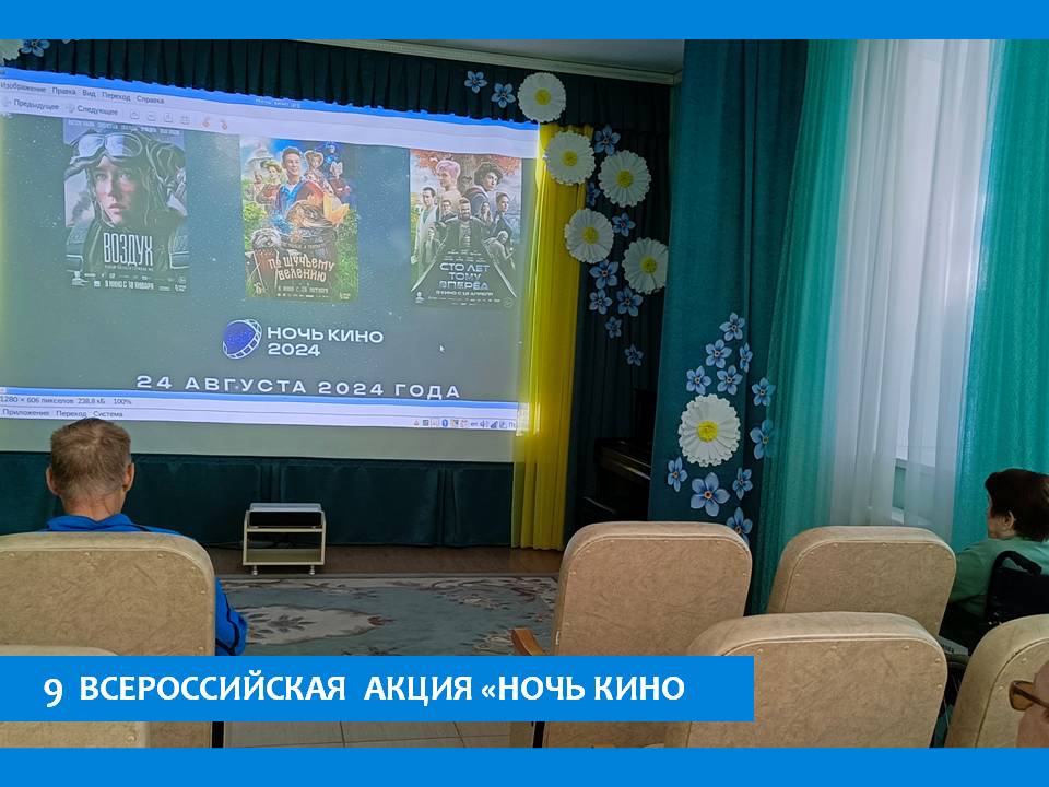 Всероссийская акция «Ночь кино», ставшая культурно значимым ежегодным кинособытием, пройдет в девятый раз 24 августа 2024 года во всех субъектах Российской Федерации. В этом году география акции значительно расширилась, включив в себя площадки посольств России за рубежом и других российских загранучреждений в странах БРИКС и СНГ, которые впервые примут участие в мероприятии. В рамках «Ночи кино» в пансионате организован бесплатный показ отечественного фильма «По щучьему велению» (реж. Александр Войтинский, 2023).