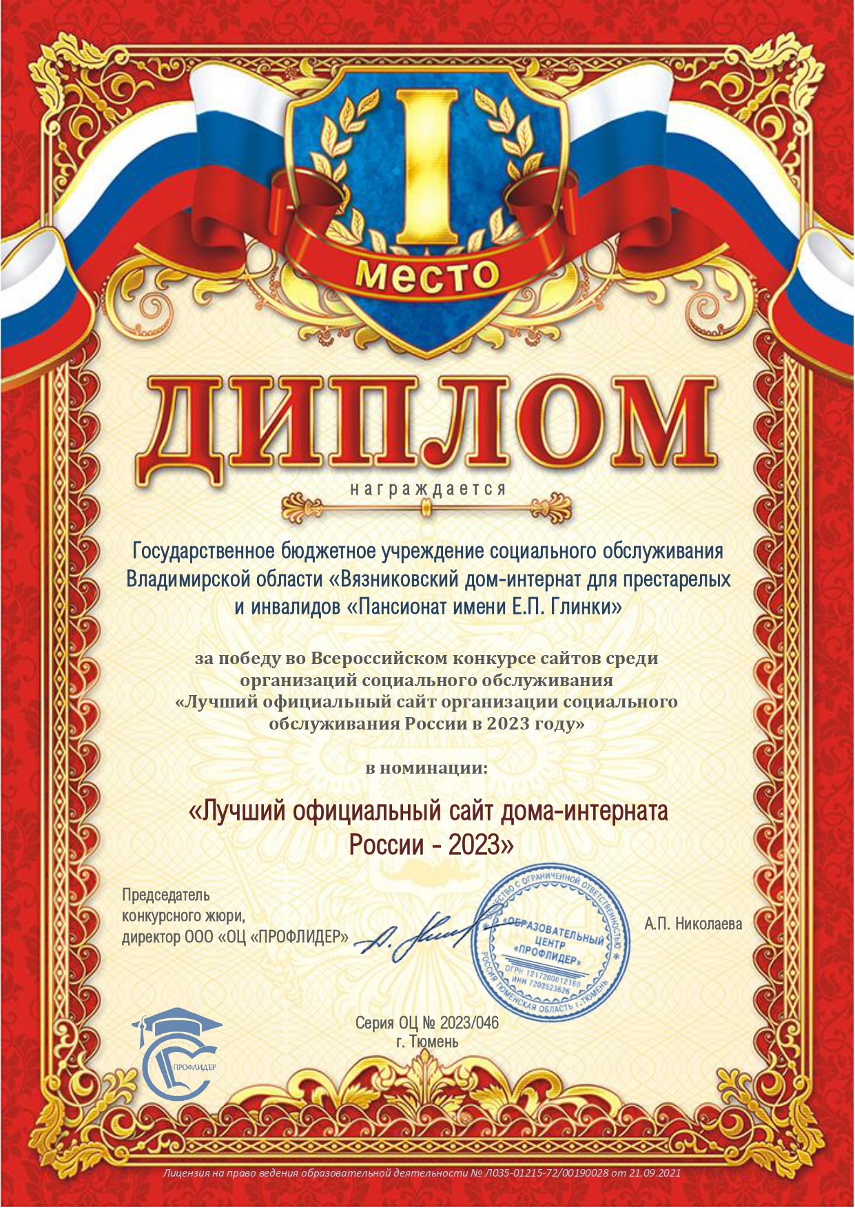 601411, Владимирская область, Вязниковский район, с.Сарыево, ул.Советская, д.33а.