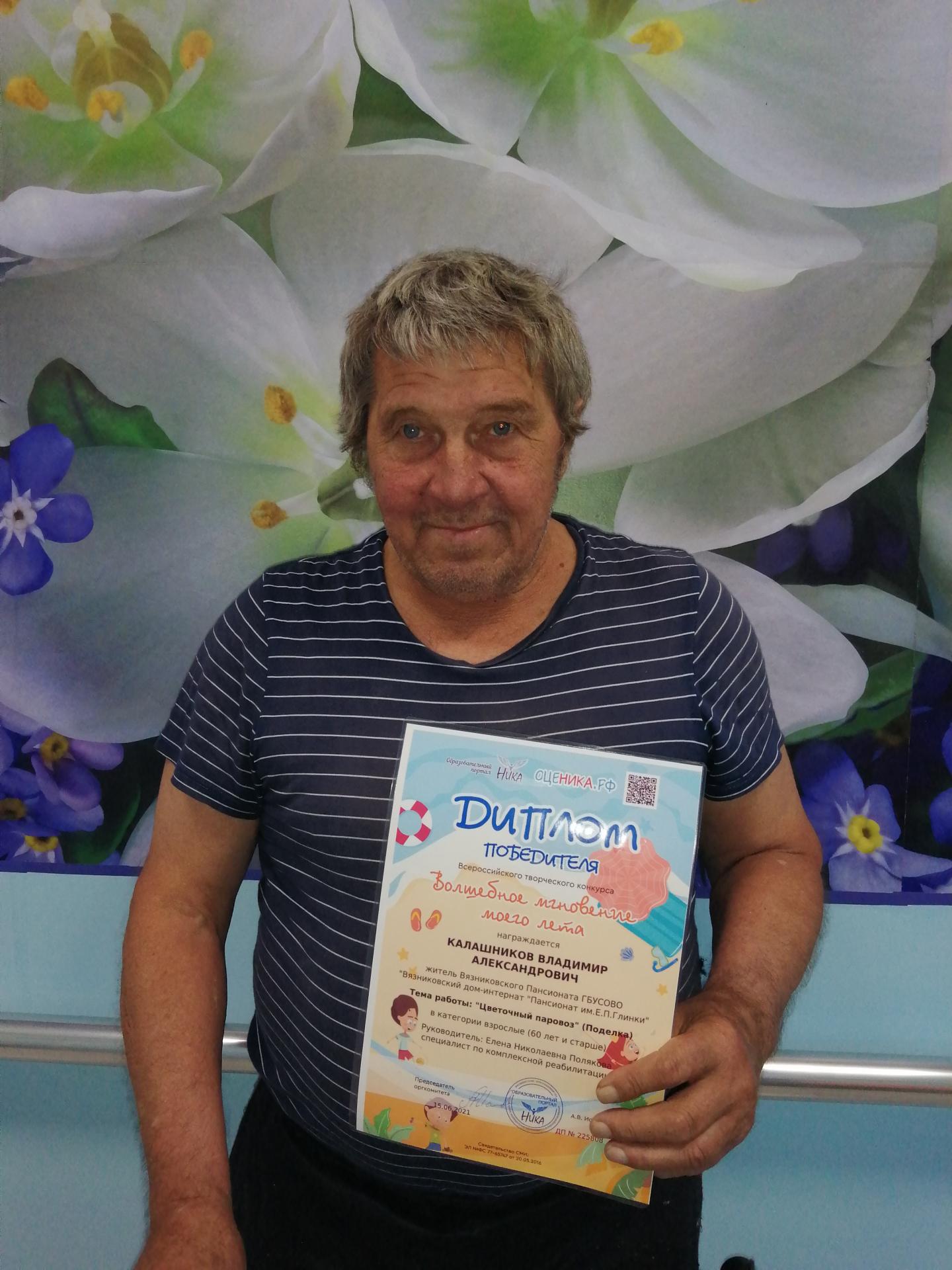 Житель нашего Пансионата Владимир Александрович Калашников, принял участие во всероссийском дистанционном творческом конкурсе «Волшебное мгновение лета!», проводимом образовательным порталом «Ника».