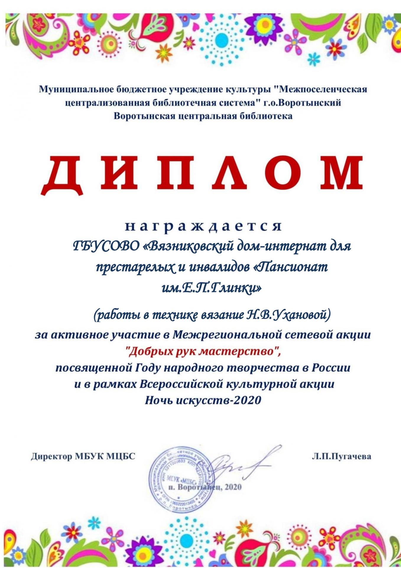 Вязниковский Пансионат принял участие в межрегиональной сетевой акции «Добрых рук мастерство», посвященной году народного творчества в России.