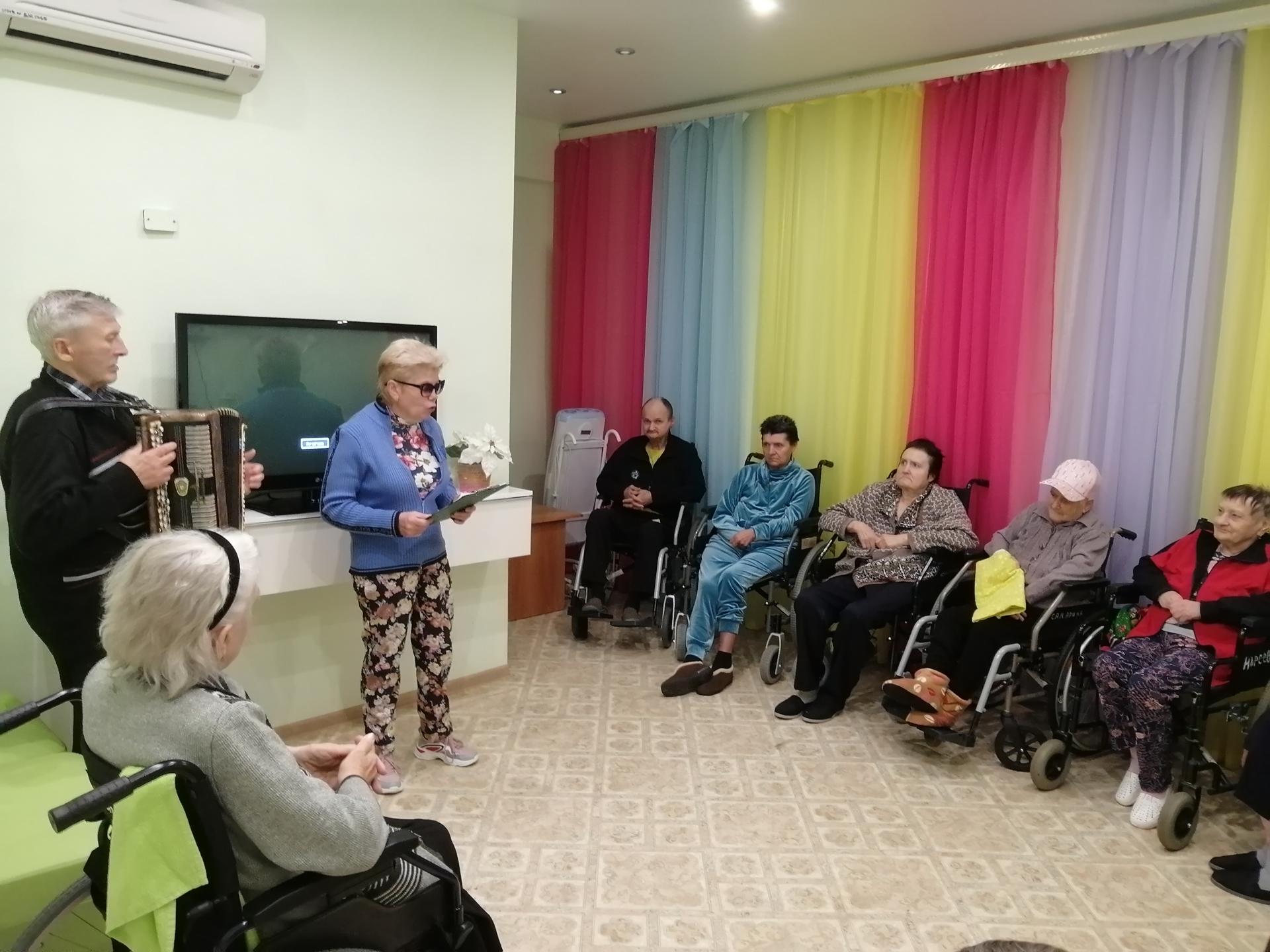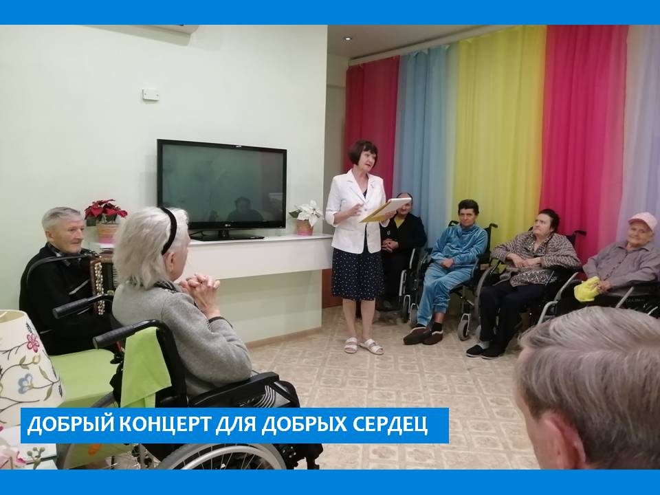 Серебряные волонтеры клуба добровольческой деятельности «ДоброSTAR» Вязниковского пансионата приехали с литературно-музыкальной программой к жителям интенсивного ухода с.Сарыево и подошли к мероприятию с чувством ответственности, старались донести до слушателя тепло своего сердца. Концертная программа включала в себя стихи и песни знакомых и любимых авторов. Радостные лица людей стали наивысшей наградой для участников мероприятия. Артисты постарались поднять настроение участникам мероприятия, добавить радости и разнообразия в обыденную жизнь, а зрители с удовольствием подпевали и аплодировали.
