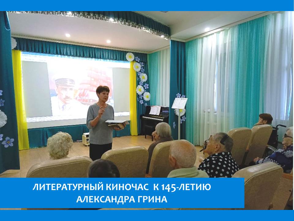 В  пансионате  прошёл литературный киночас «К мечте на алых парусах», посвященный 145-летию со дня рождения Александра Грина. Мероприятие собрало любителей литературы, которые пришли вспомнить о творчестве одного из самых ярких представителей русской литературы.