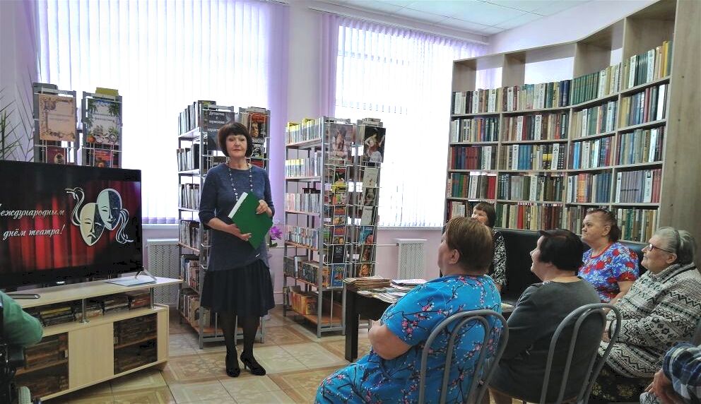 "Всемирный день театра", его можно по праву считать праздником для всех. Для участников праздничного часа был предложен рассказ об истоках театра, так же вспомнили выдающихся актеров и особое внимание отвели Иннокентию Смоктуновскому, невероятно талантливому  актёру театра и кино. В его исполнении позвучали стихи Пушкина и монолог Гамлета из пьесы Шекспира. Участники вечера  разыграли сценку «Отдых у озера».