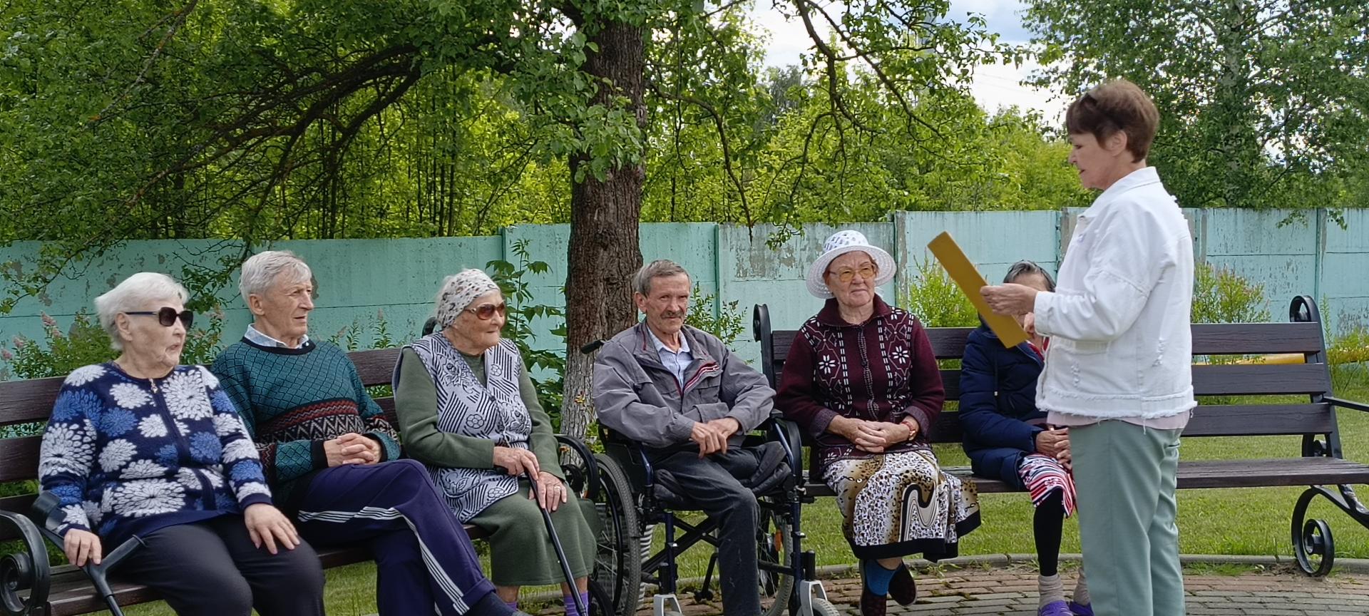 Жители Пансионата решили вопрос проще, сначала посетили выставку «Летние травы и цветы», оформленную в библиотеке и, вооружившись знаниями, отправились на экологическую прогулку. Побывали на цветочных полянках, остановились на станции легенд, послушали цветочное бюро погоды, а так же вспомнили цветочные стихи и песни. А тут и гости подоспели, да еще и с гитарой, ну и зазвучали песни, конечно же, о цветах.