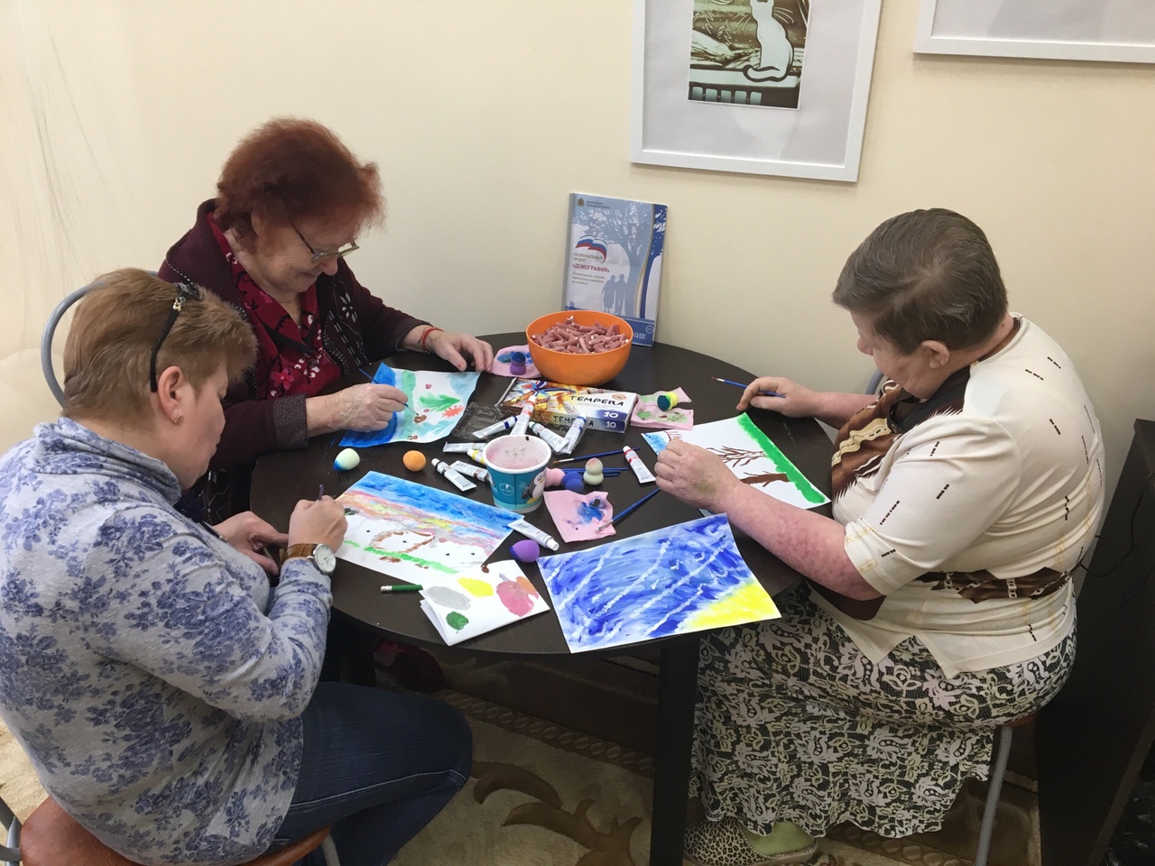 Всем присутствующим на занятие было предложено насладится процессом рисования красками, каждый мог выразить свои эмоции и чувства и так как это не первое занятие, сегодня, почти все присутствующие смогли раскрыть свой внутренний мир, обсудить тревожащие друг друга проблемы. В конце занятия проживающие Пансионата покидали кабинет психолога с улыбкой потому, что смогли оставить все свои невзгоды на бумаге.