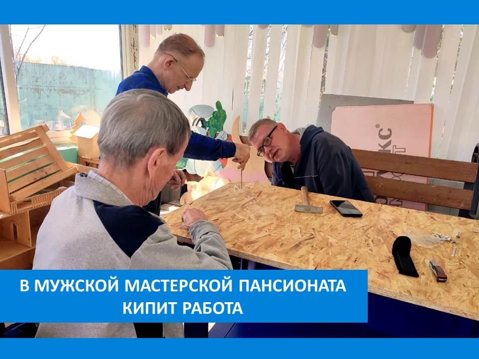 На данный момент, по просьбе специалистов, они помогают украсить актовый зал, вырезая из фанеры декорации. Так же продолжается работа по оформлению территории: что-то рождается новое, а что-то ремонтируется.