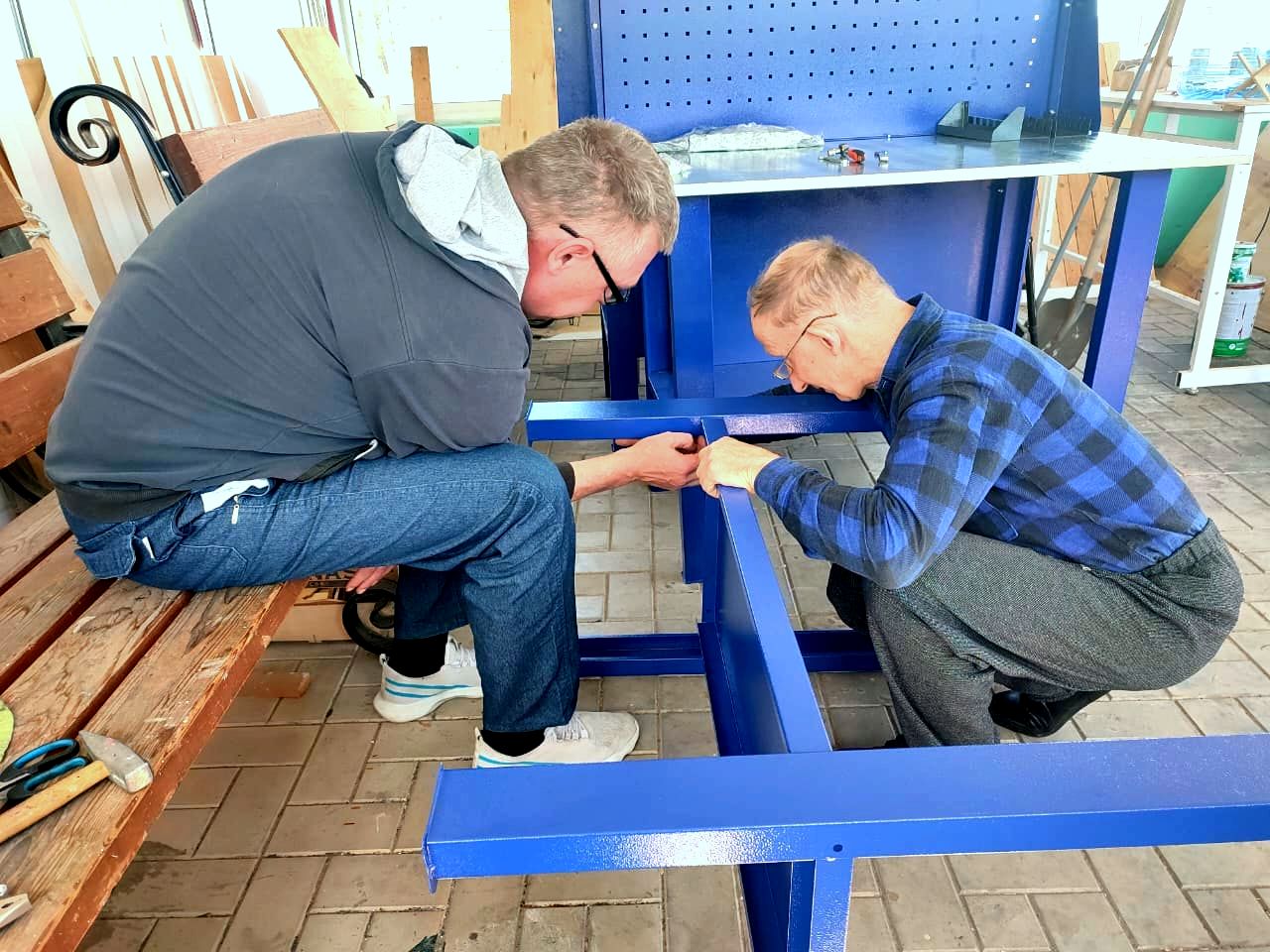 Участники проекта «#ДЕДЫ-непоСЕДЫ» в своей веранде-мастерской работают с вдохновением и интересом. Для удобства, своё рабочее место мастера обустраивают различными шкафчиками, органайзерами для столярных мелочей и крепежа, изготавливая так же своими руками.