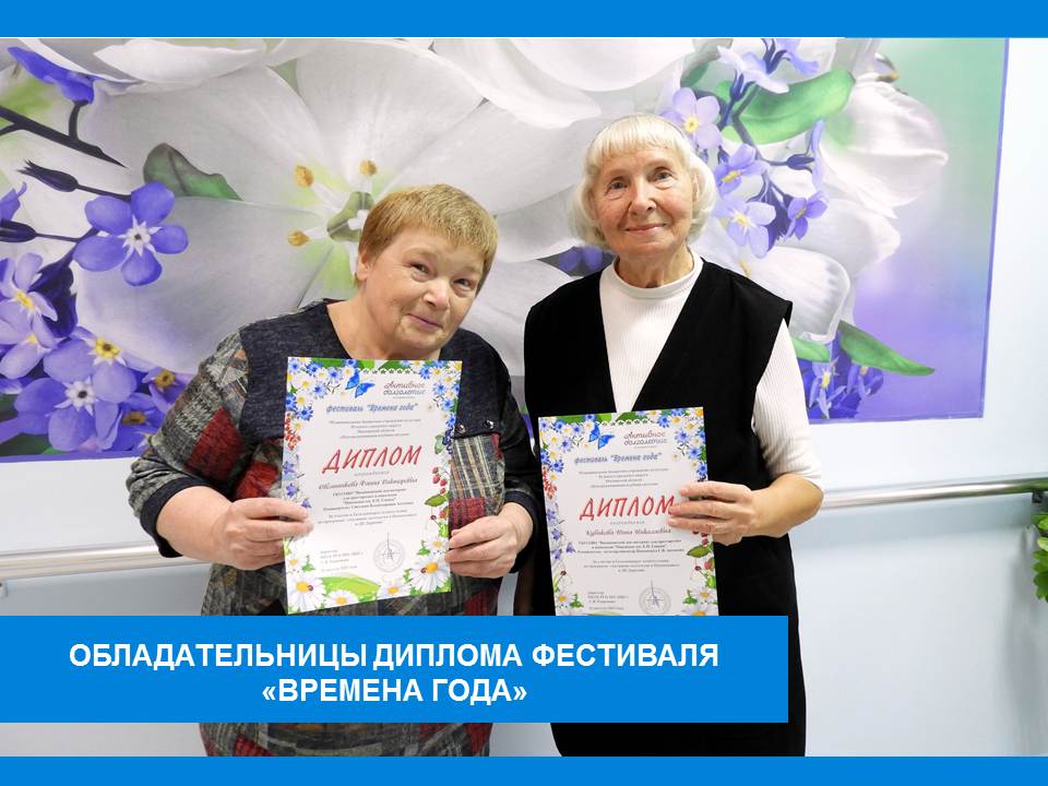 Фаина Викторовна Овсянникова и Нина Николаевна Кубикова (слева направо) неоднократно становятся обладательницами дипломов этого фестиваля, проявляя себя в номинации «Художественное слово». Несомненно, они и дальше готовы радовать всех своим творчеством и делиться вдохновением.