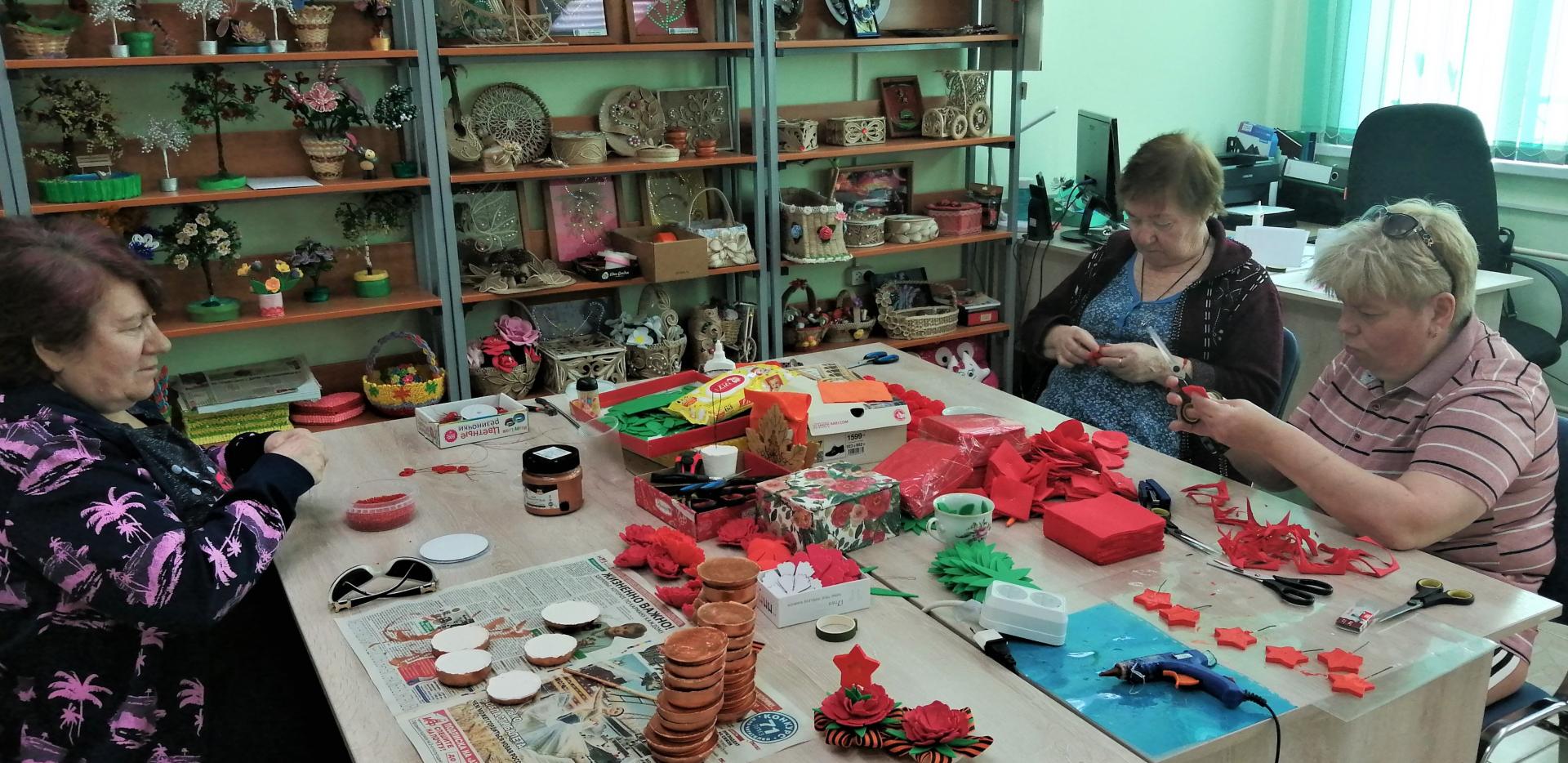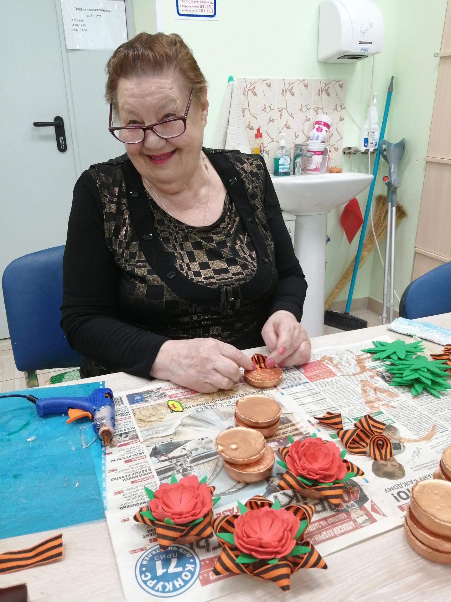 В преддверии великого праздника Победы в творческой студии нашего Пансионата прошёл мастер-класс по изготовлению сувениров к 9мая. Участницы занятия сделали несколько памятных подарков для наших ветеранов и тружеников тыла. Подарки будут вручены в День Победы – 9 мая.