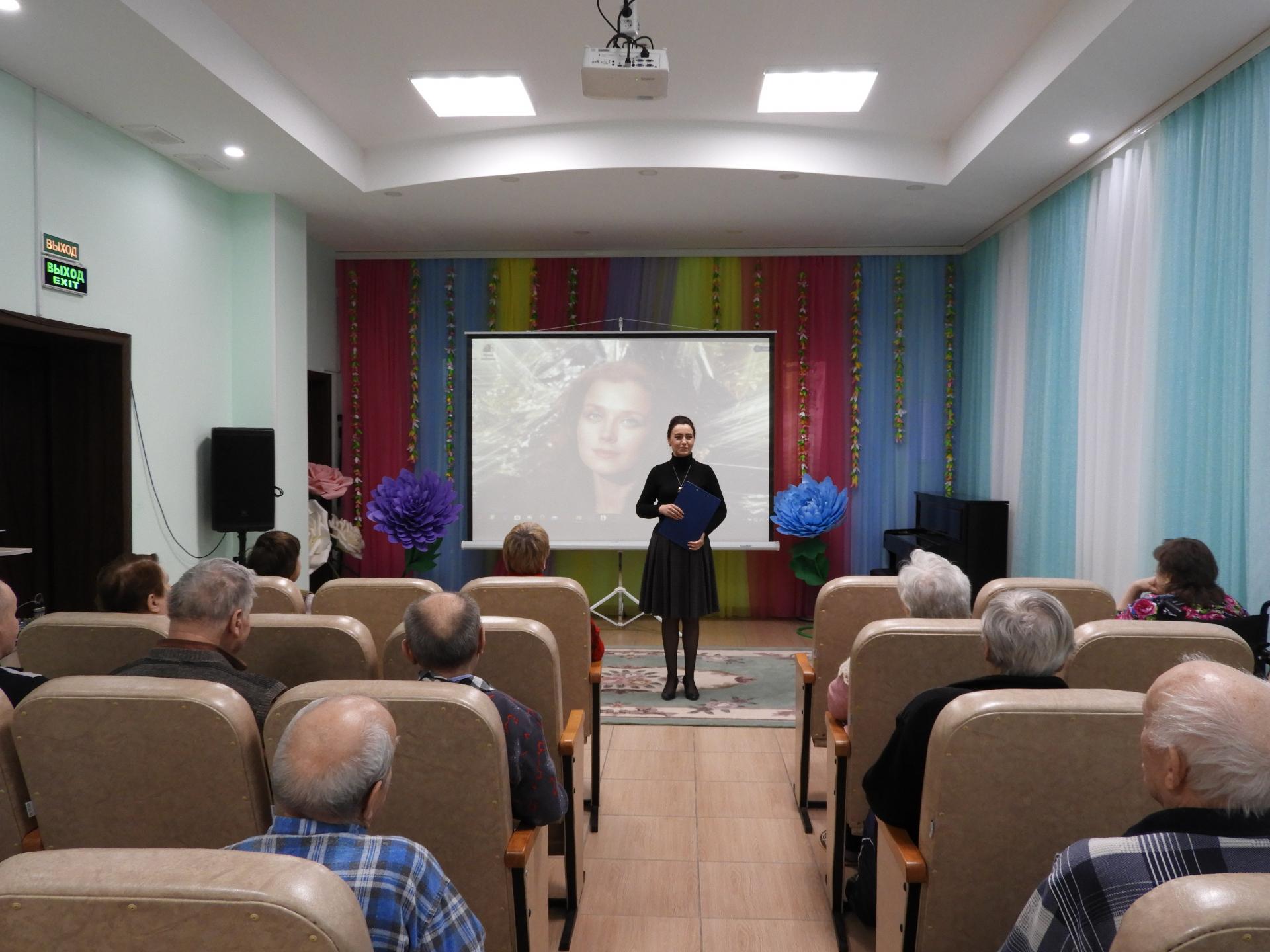 13 марта свой 70-летний юбилей отметила замечательная актриса, Народная артистка РФ Ирина Алфёрова. В связи с юбилейной датой любимой актрисы, для жителей Вязниковского Пансионата был проведён вечер-портрет из цикла «Кумиры всех времён»  – «Ирина Алфёрова. И талант, и красота!» Наиболее известные роли она сыграла в таких фильмах, как «Хождение по мукам», «Д’Артаньян и три мушкетера», «С любимыми не расставайтесь», «Звезда шерифа» и др. Фильмы с её участием – классика, которую с удовольствием можно пересматривать и по сей день.
