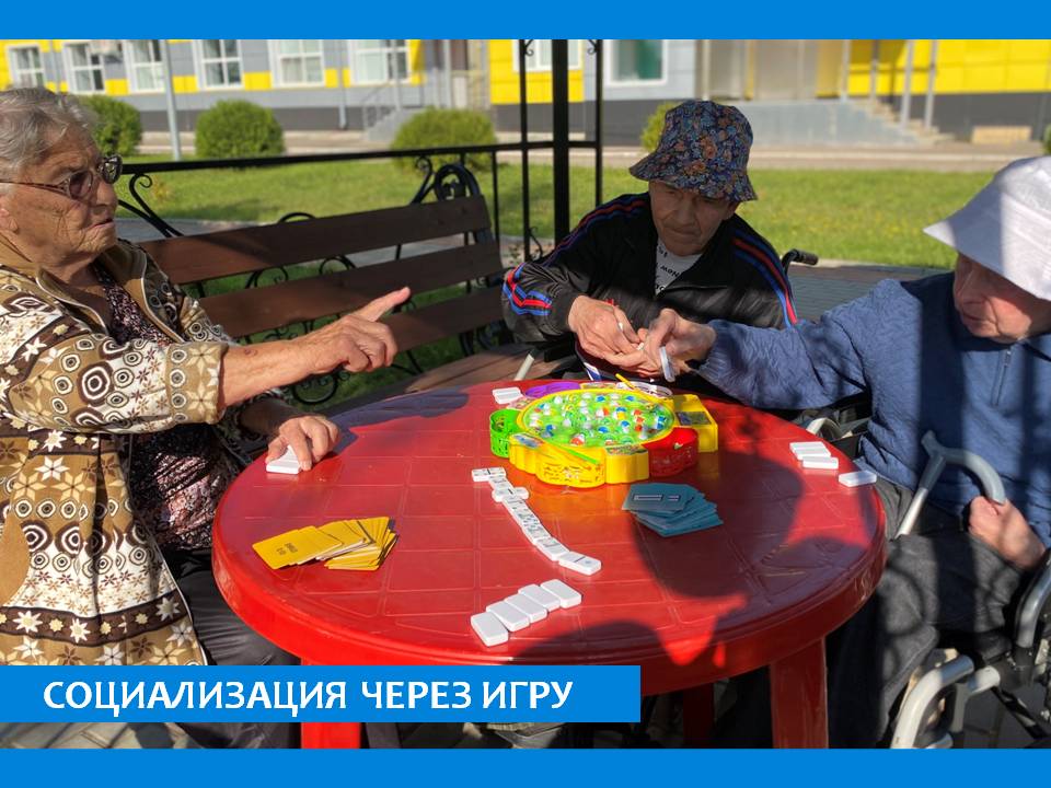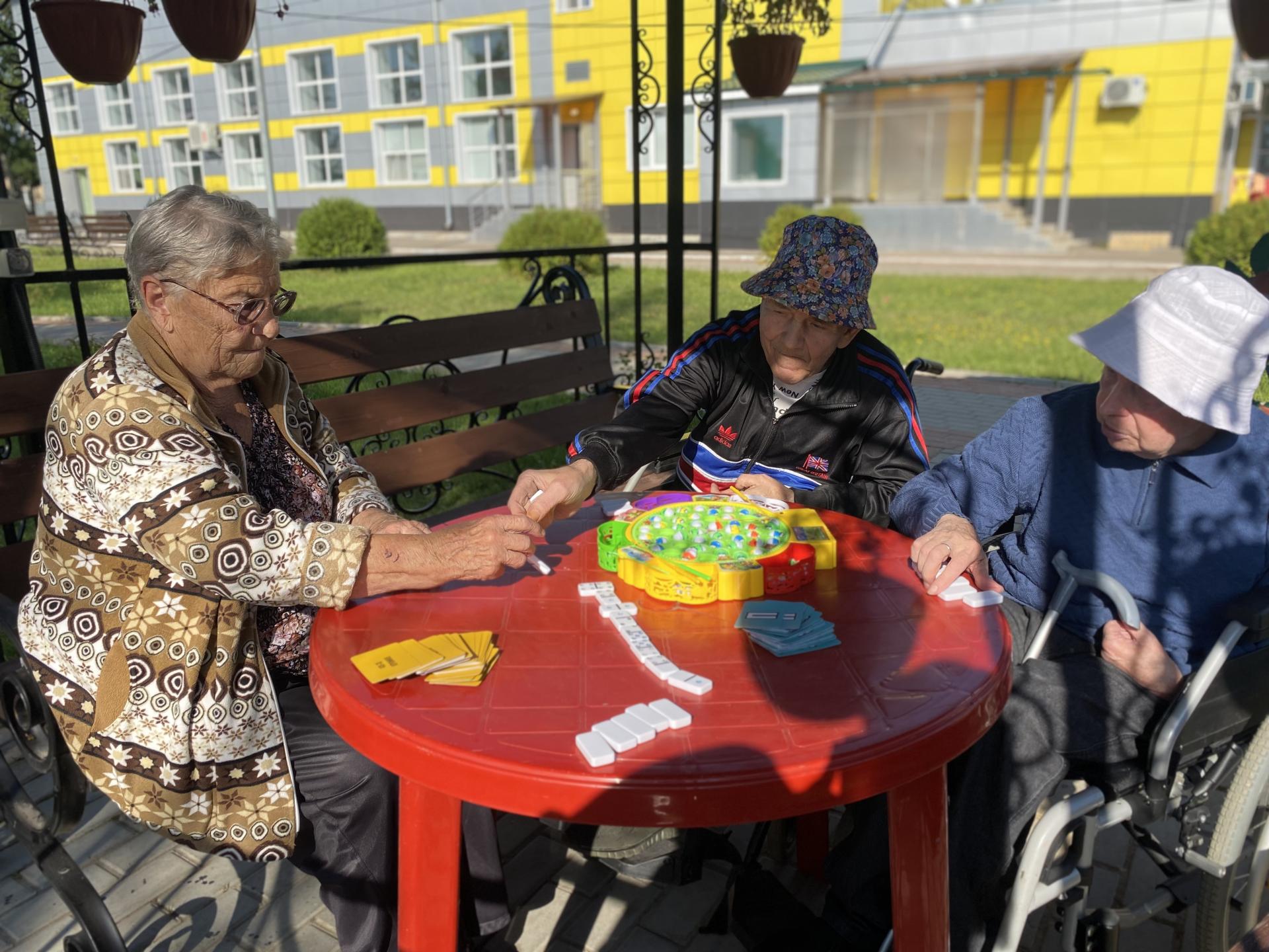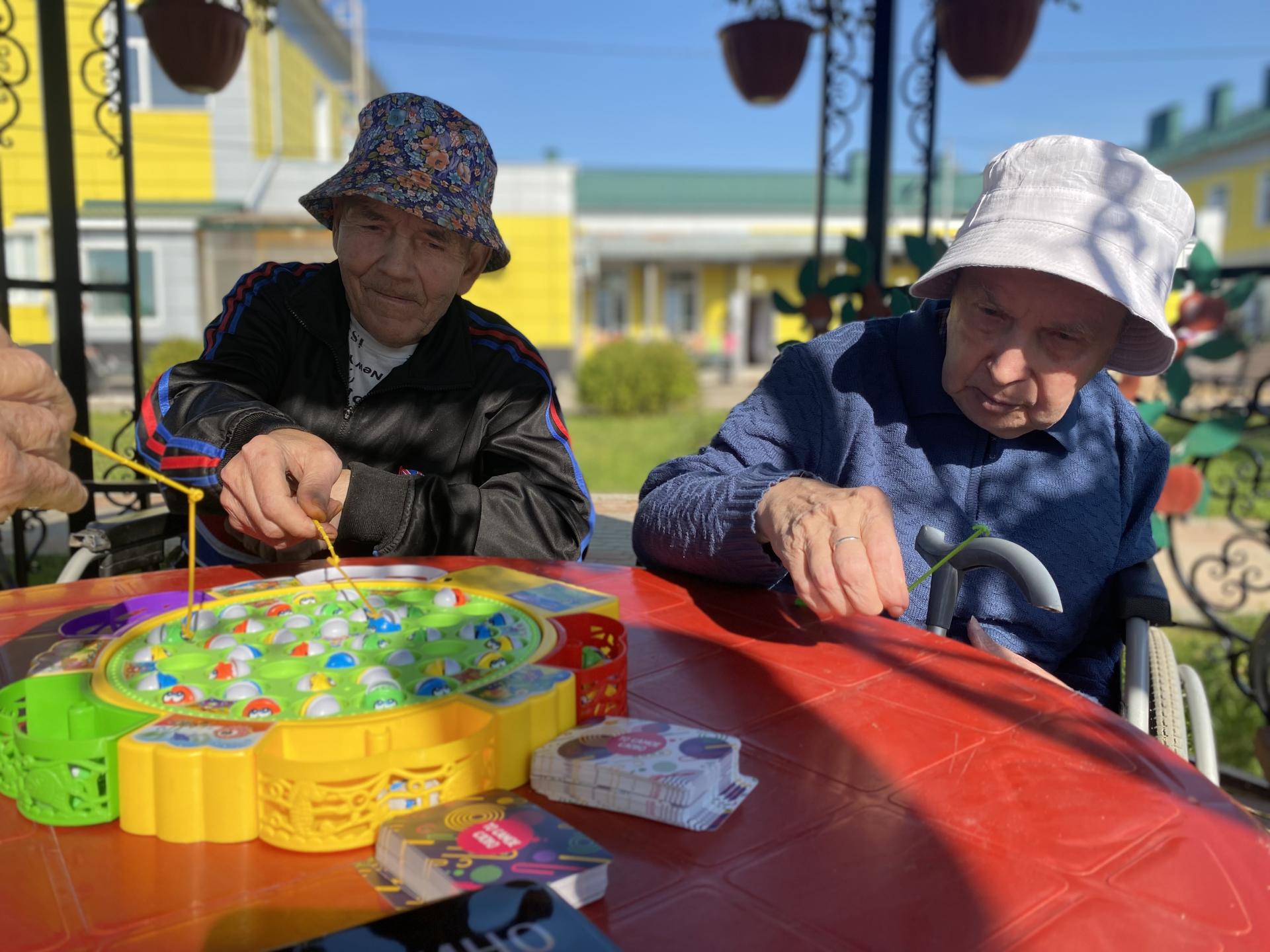 Игровые поединки в пансионате не редкость. Это игры, которые легко организовать в самой маленькой компании. Но еще интереснее, если кроме двух участников есть азартные зрители и болельщики. На занятии психолог предложила поучаствовать в соревновании по ловле рыбки, поиграть в настольную веселую, но в тоже время непростую игру, сыграть в домино и создать несколько геометрических композиций из цветных фигурок.