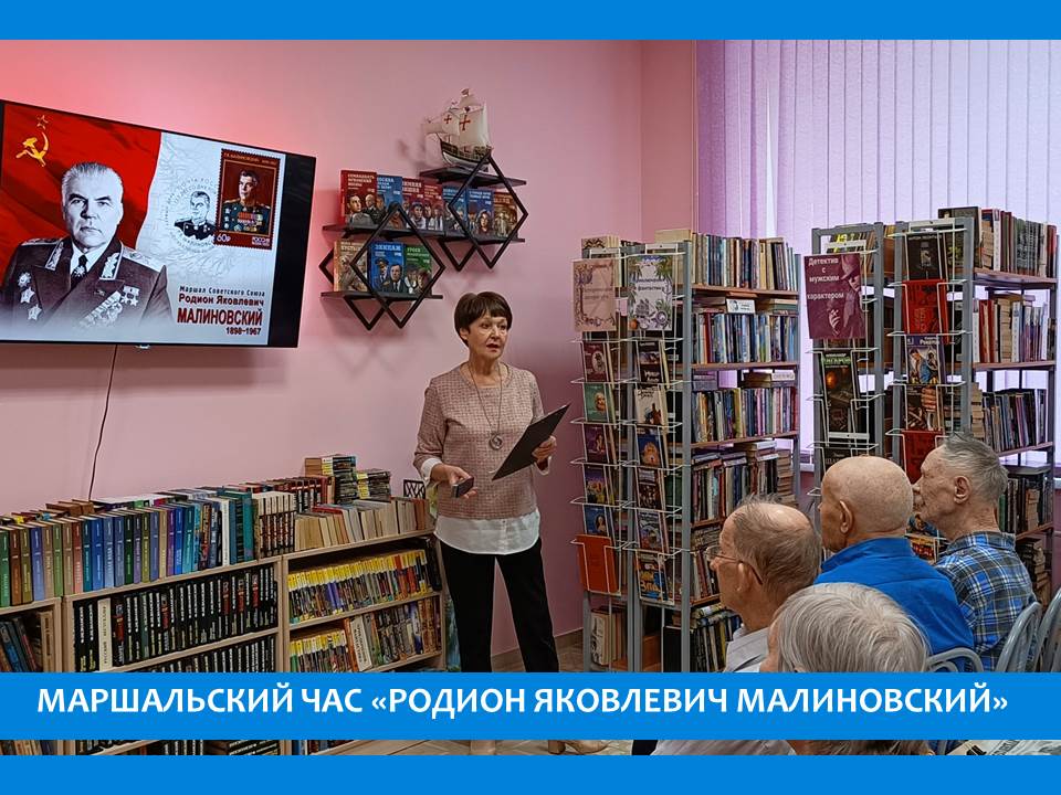 Сегодня в ходе мероприятия познакомились с биографией Маршала Советского Союза, дважды Героя Советского Союза, министра обороны СССР Родиона Яковлевича Малиновского, посвятившего всю свою жизнь преданному служению Родине. Родион Яковлевич - единственный отечественный военачальник, который написал мемуары о Первой мировой войне. Над книгой «Солдаты России» он трудился в последние годы своей жизни. В военную историю России Малиновский Родион Яковлевич вошел как выдающийся полководец Победы и видный государственный деятель, пройдя путь от простого солдата до Маршала Советского Союза, от рядового пулеметчика до министра обороны страны. В рамках клуба «Документальная среда» посмотрели документальный фильм «Маршалы Сталина. Родион Малиновский»