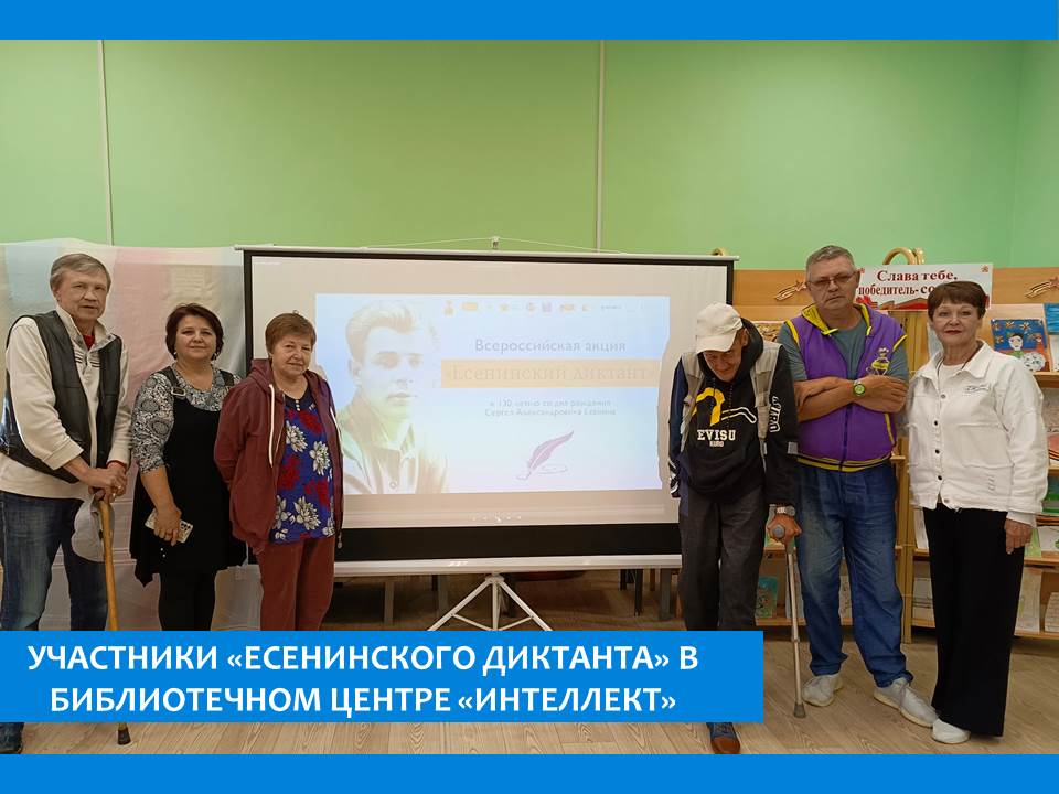 Жители пансионата приняли участие во Всероссийской акции «Есенинский диктант», приуроченной ко 130-летию великого поэта. Площадкой диктанта слал библиотечный центр «Интеллект»