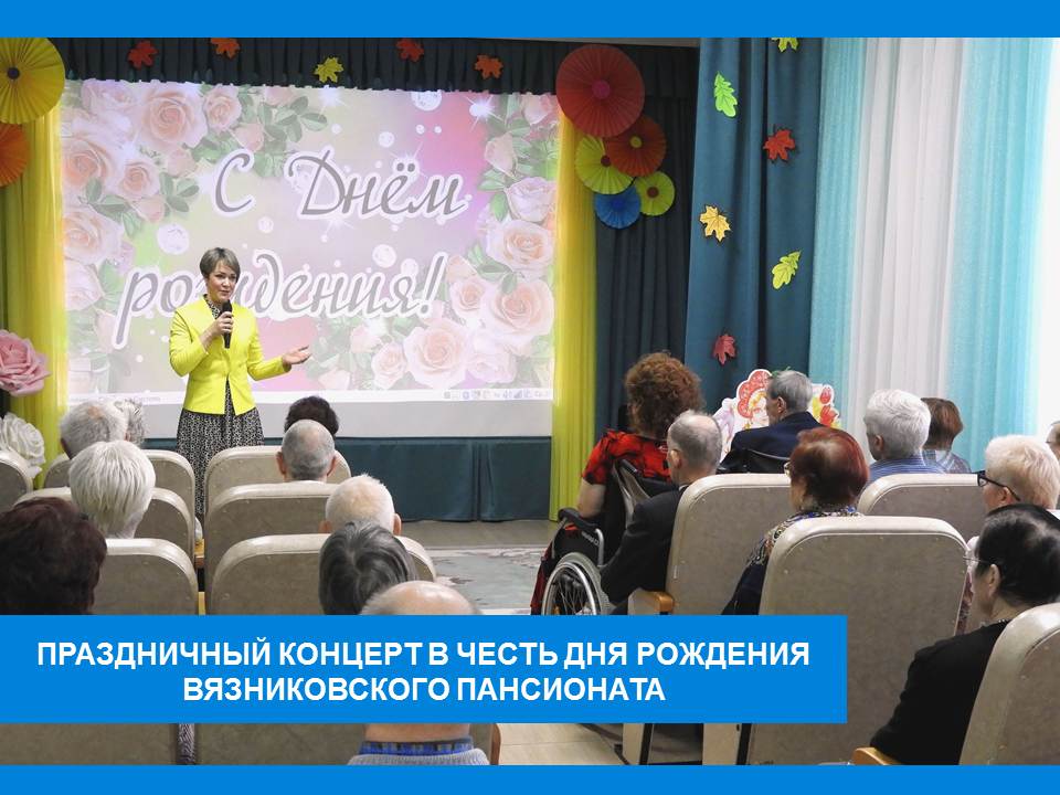 27 сентября, в преддверии дня рождения Вязниковского Пансионата, в актовом зале прошёл праздничный концерт «Нам – 6!». Всех собравшихся поздравила директор Екатерина Александровна Сергеева, отметив, насколько жизнь в Пансионате с каждым годом становится всё активнее и качественнее – и это есть совместный труд сотрудников и жителей. Очень впечатлила презентация под песню «Мы вместе!», отобразившая всю активную, творческую, разностороннюю деятельность жителей, начиная с самых первых дней проживания в Пансионате. А серебряные волонтёры Пансионата подарили праздничный концерт, который не оставил равнодушным ни одного человека.