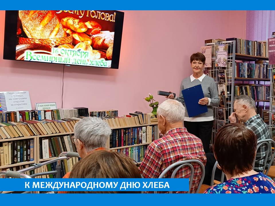 Одним из наиболее популярных продуктов ежедневного употребления является хлеб, поэтому совершенно неудивительно, что ему решили выделить отдельный день в году. Без хлеба не обходится практически ни один обед. Даже те, кто придерживается строгой диеты, все равно употребляют в свой рацион низкокалорийные хлебцы или сухарики. В рамках клуба «Документальная среда» участники мероприятия посмотрели занимательный и познавательный видеоролик о истории хлеба и его пользе. Закончилось мероприятие просмотром музыкальных клипов о хлебе: «Ты запомни сынок», «Шумят хлеба высокие», «Ой ты рожь».