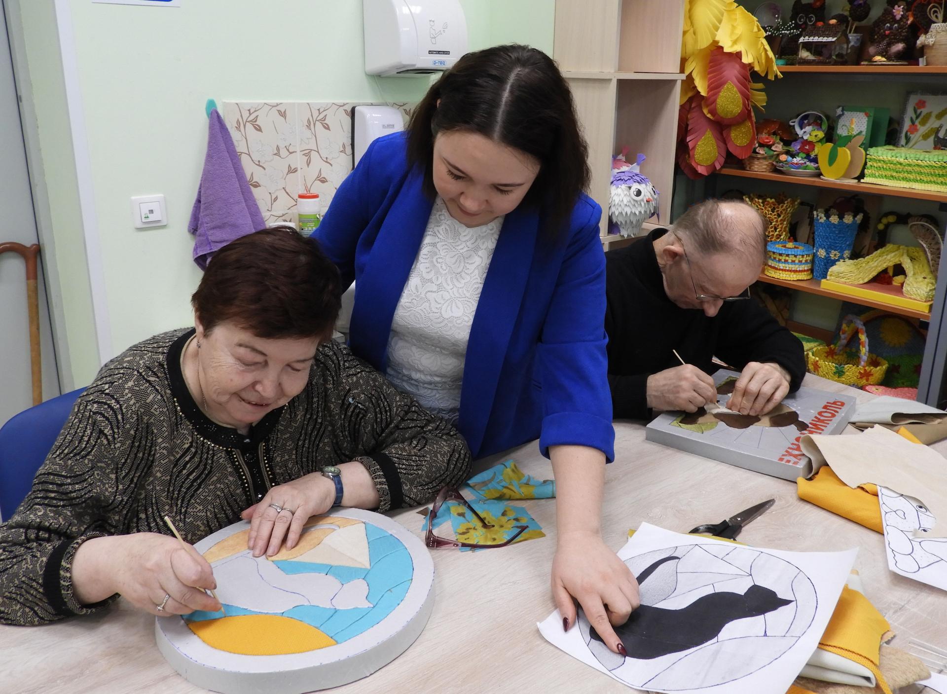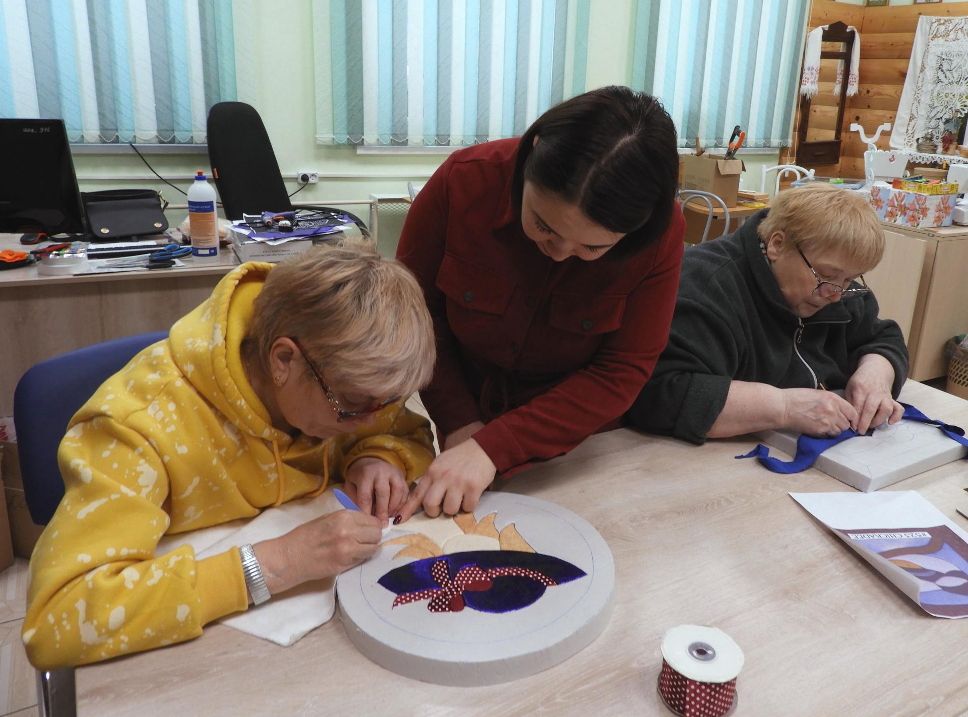 Эта техника, напоминающая лоскутное шитье, привлекла внимание рукодельниц Пансионата ярким результатом, минимальными затратами, полной свободой в подборке сюжетов и цветов рисунка.