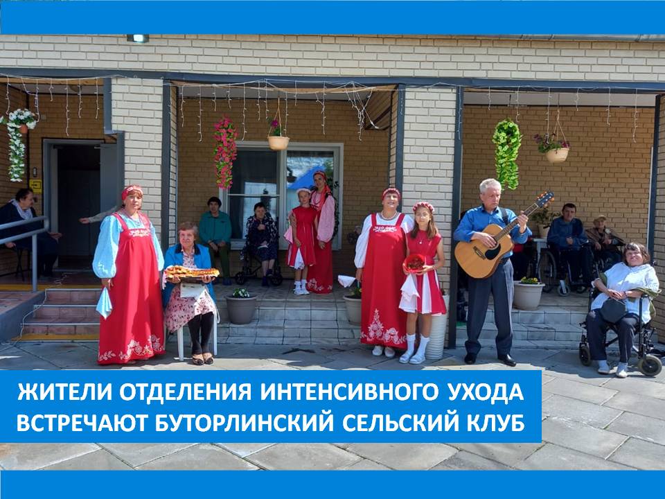 В гости к жителям отделения интенсивного ухода Вязниковского Пансионата (с. Сарыево) с пышными пирогами и со спелой клубникой пожаловал Буторинский сельский клуб.