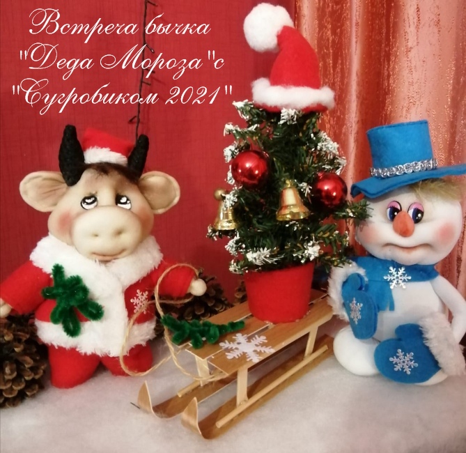 Мастерская «Пансионата им.Е.П.Глинки» принимает участие в конкурсе "Мастерская Деда Мороза" в номинации «Новогодняя поделка». Представлены символ Нового года бычок «Дед Мороз» и снеговичок «Сугробик 2021». Поделка выполнена в скульптурно-текстильной технике. (коллективная работа). Размер новогодней игрушки 20*30 см.