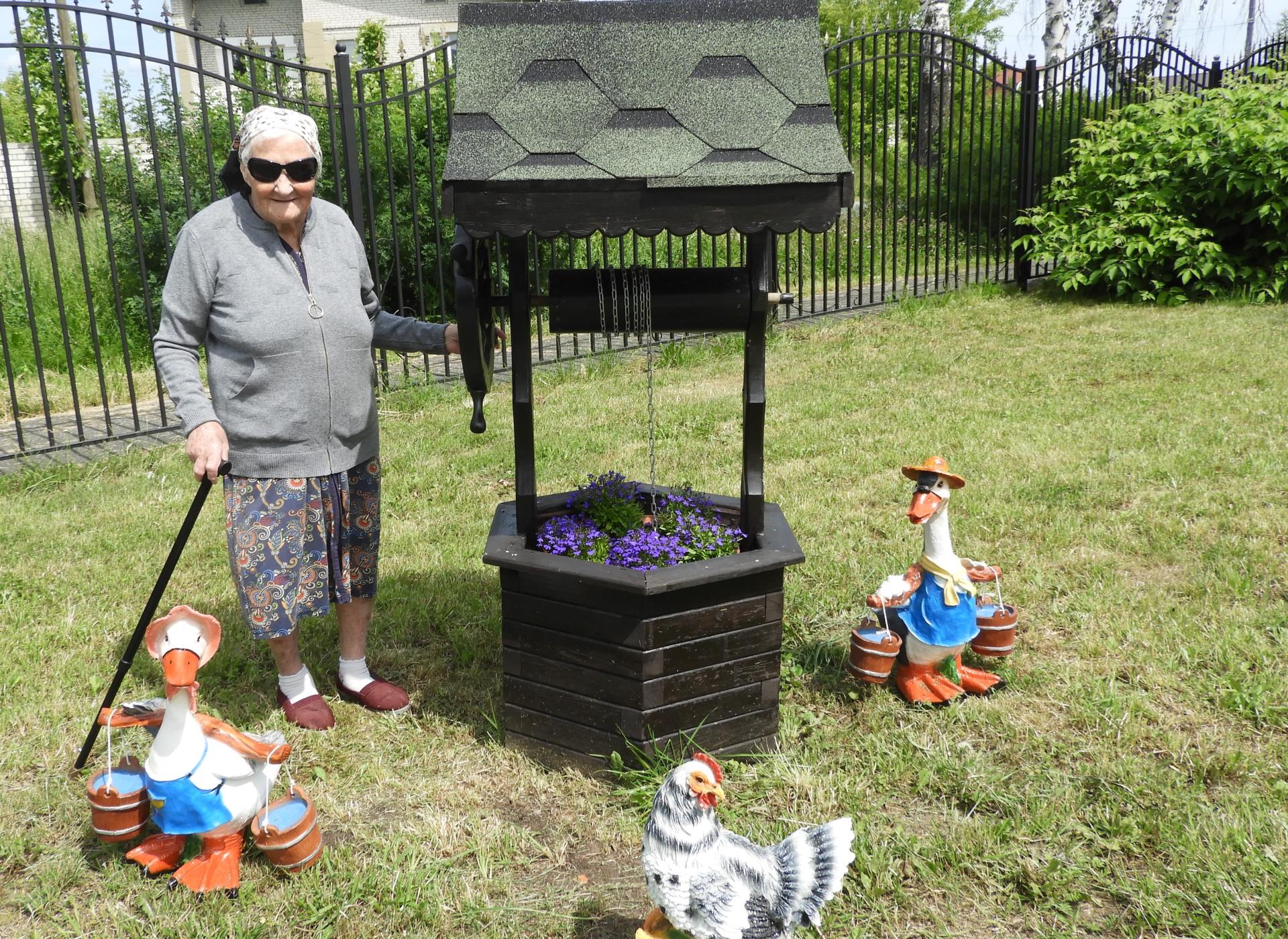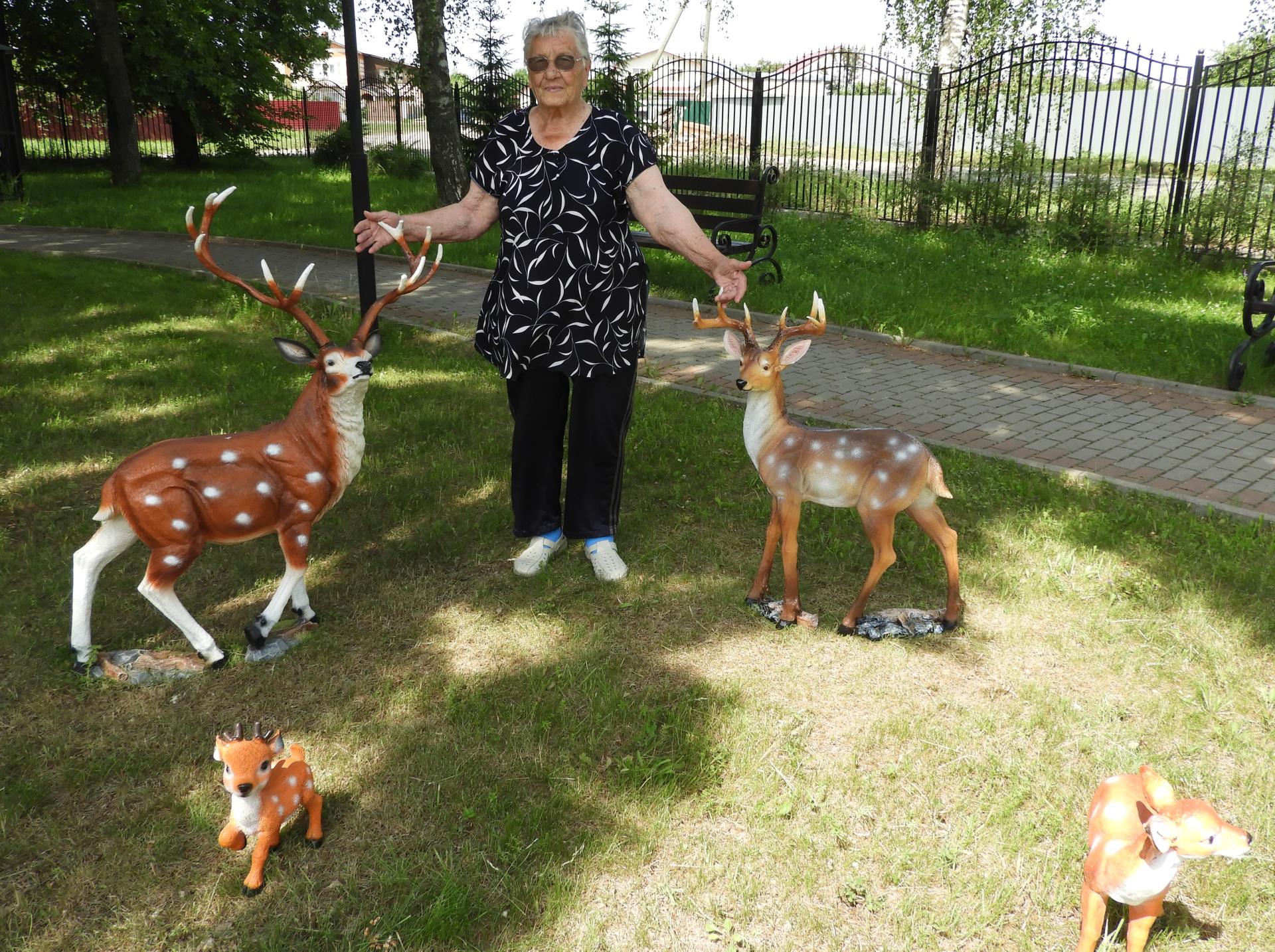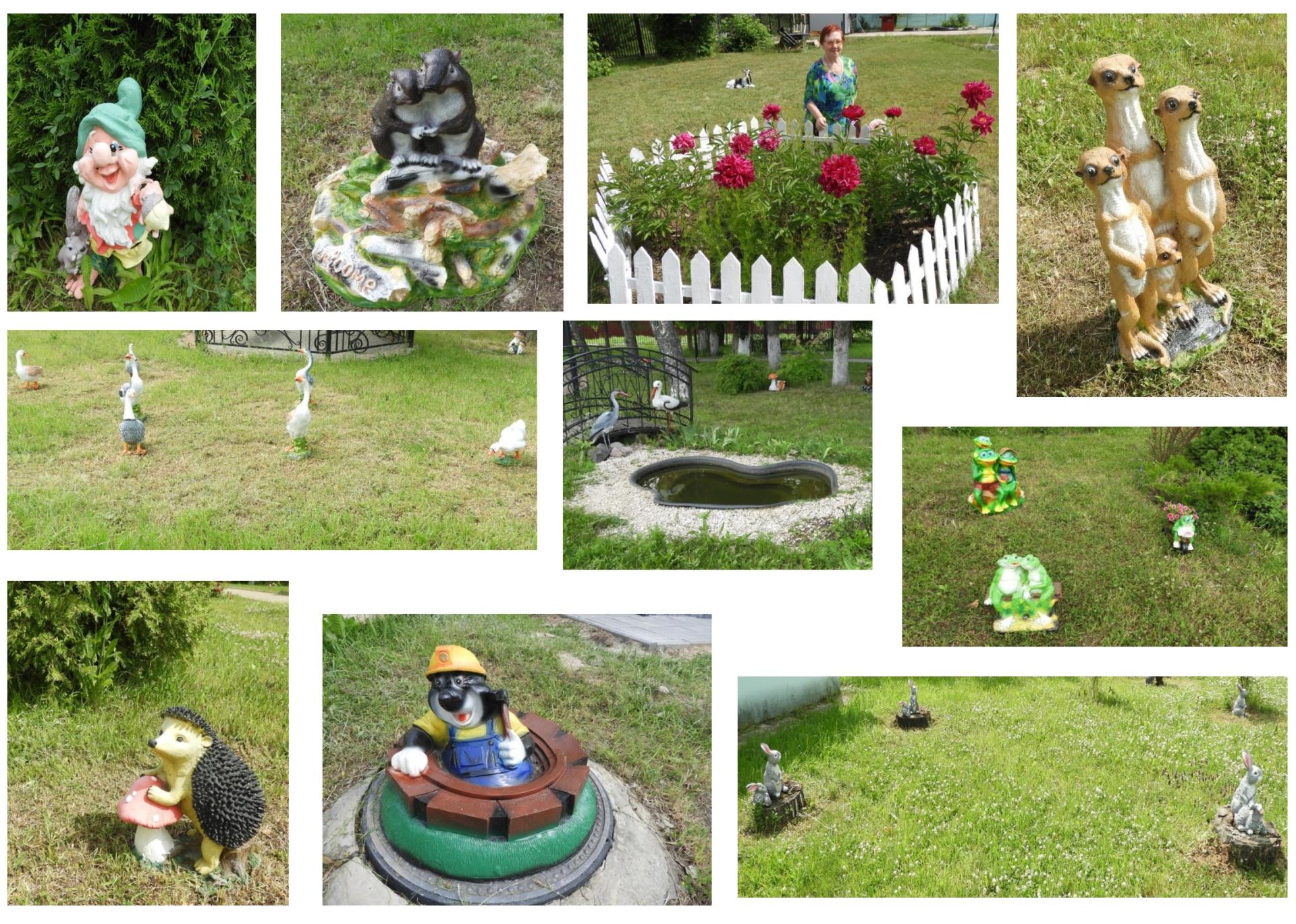 Лесопарковая зона пополнилась медведями и оленями, декоративную телегу с цветами охраняет гусиная семья, нашлось место и для лягушечьей компании, заячий островок обосновался рядом с героиней русских народных сказок – Бабой-Ягой и её избушкой на курьих ножках. Есть островок и в деревенском стиле: у колодца пасутся утки, куры, отдыхает корова с телёнком, а рядом семейная пара, которая, видимо, наслаждается летней порой. Ещё на территории Пансионата живут суслики, бобры, кроты и ёжики. А старожилы – гномы, ничуть не сдают свои позиции перед новичками. Вот такая красота!