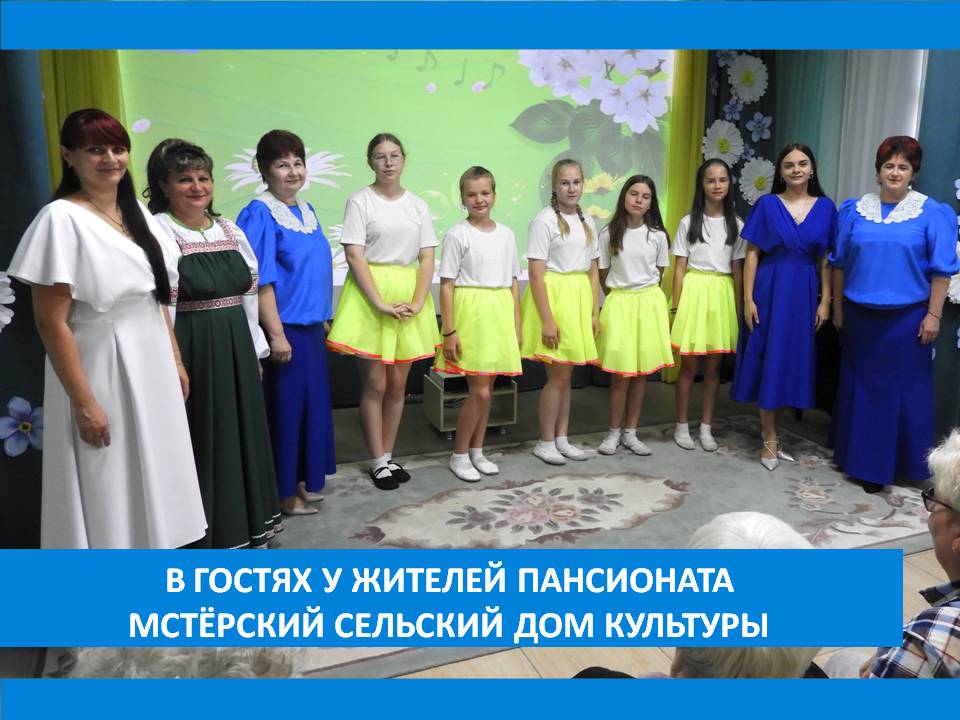 3 июля в актовом зале Вязниковского Пансионата звучала прекрасная музыка, которую привезли с собой артисты Мстёрского сельского дома культуры. Концертная программа была посвящена предстоящему празднику – Дню семьи, любви и верности. Программа была наполнена не только прекрасными песнями, но и зажигательными танцами, исполненные танцевальным коллективом «Выкрутасы». Концерт проходил в доброй и приятной атмосфере. Присутствующие в зале встречали артистов своими тёплыми аплодисментами.