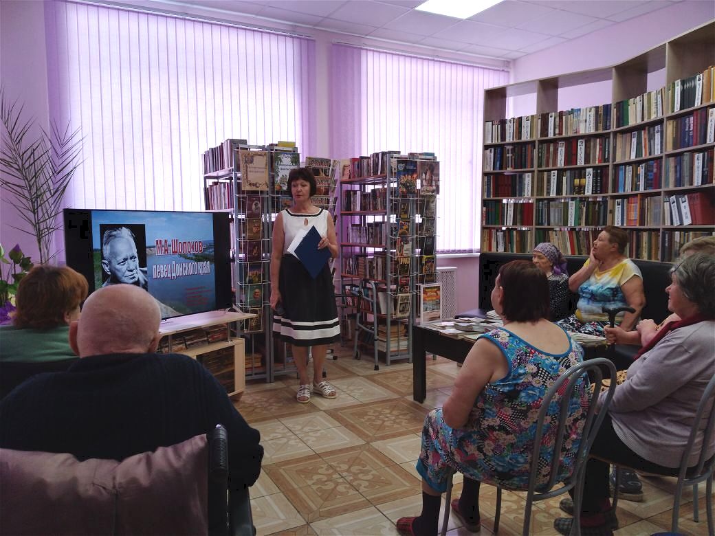В библиотеке Пансионата  прошел литературный вечер – портрет, посвященный к 115-летию Михаила Шолохова «Страницы жизни великого писателя», в рамках межрегиональной акции «Читаем книги донских писателей» #читаемкнигидонскихписателей #библиотекиростова #современнаябиблиотека На вечере вспомнили основные этапы жизни Шолохова,   его  творчество, остановились  на краткой характеристике его произведений. Некоторые факты из жизни писателя были для слушателей новостью. Рассказанное привлекло их  внимание, они с интересом слушали  и просматривали  видео-цепочку с подборкой кадров из художественных фильмов: «Нахалёнок», «Они сражались за родину», «Тихий дон», «Поднятая целина», «Судьба человека». В рамках клуба «Документальное кино» демонстрировался фильм «Острова. Михаил Шолохов»