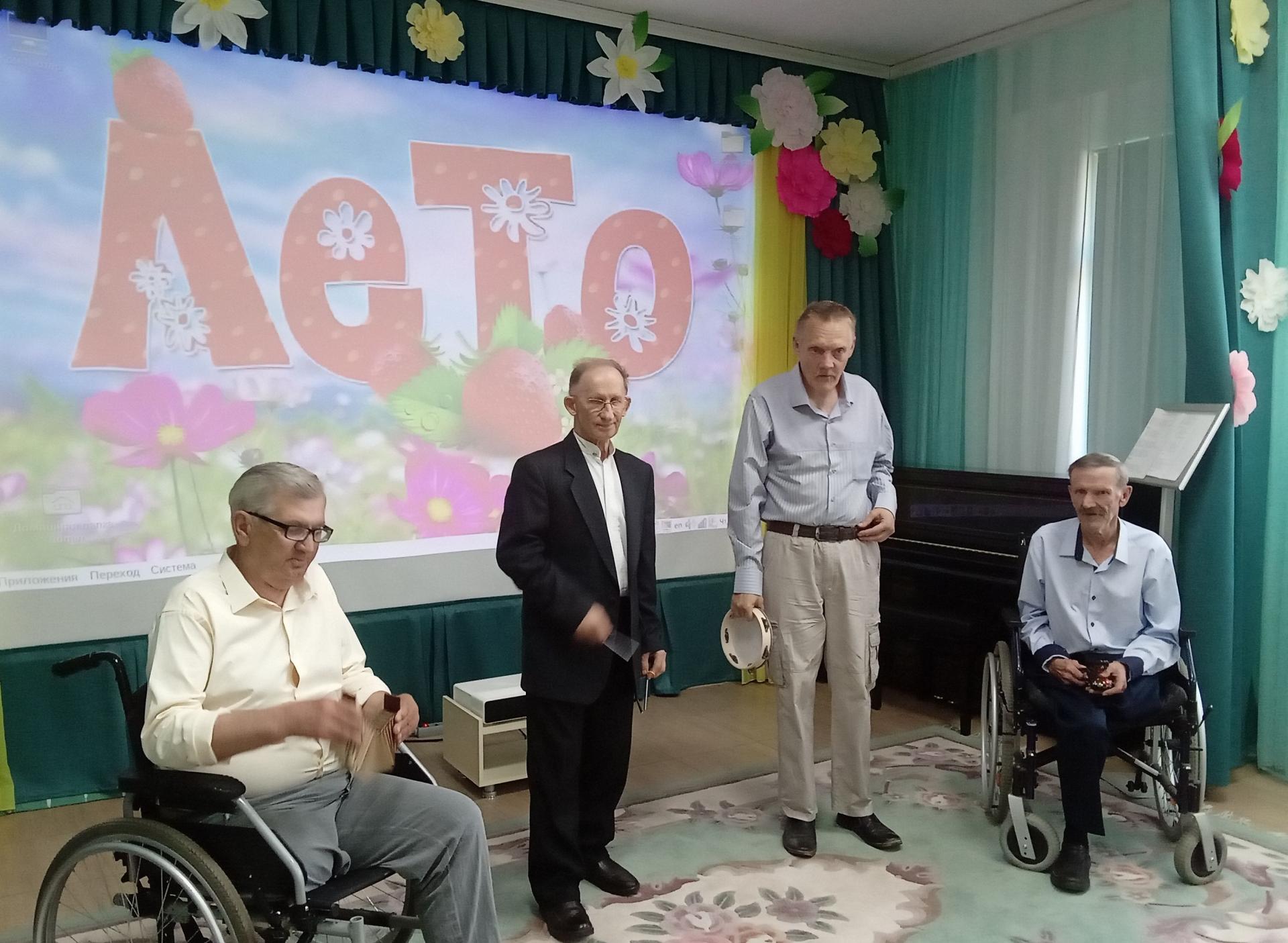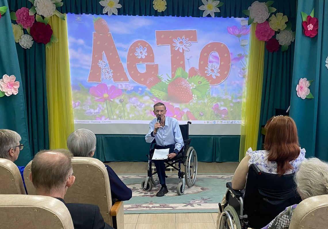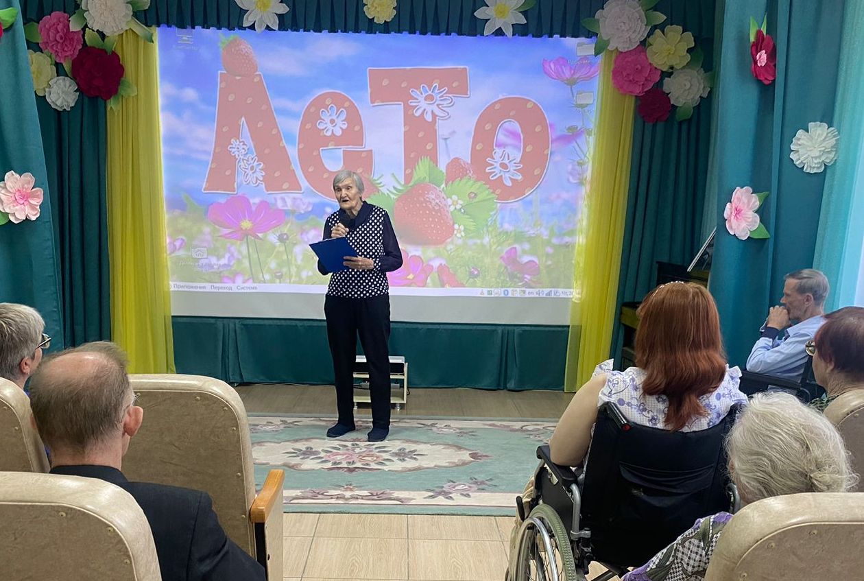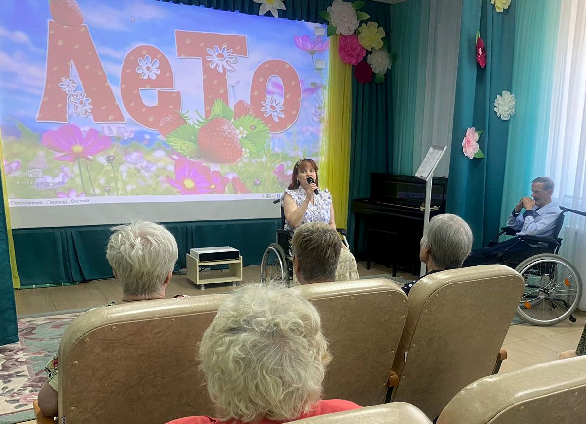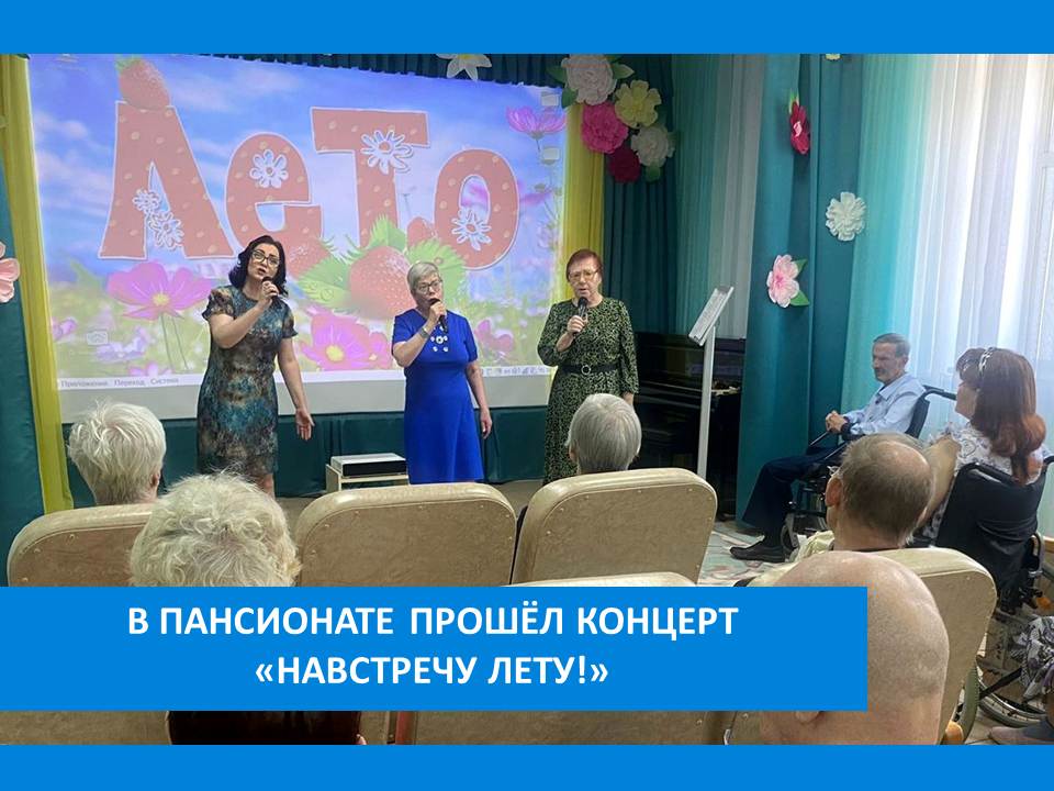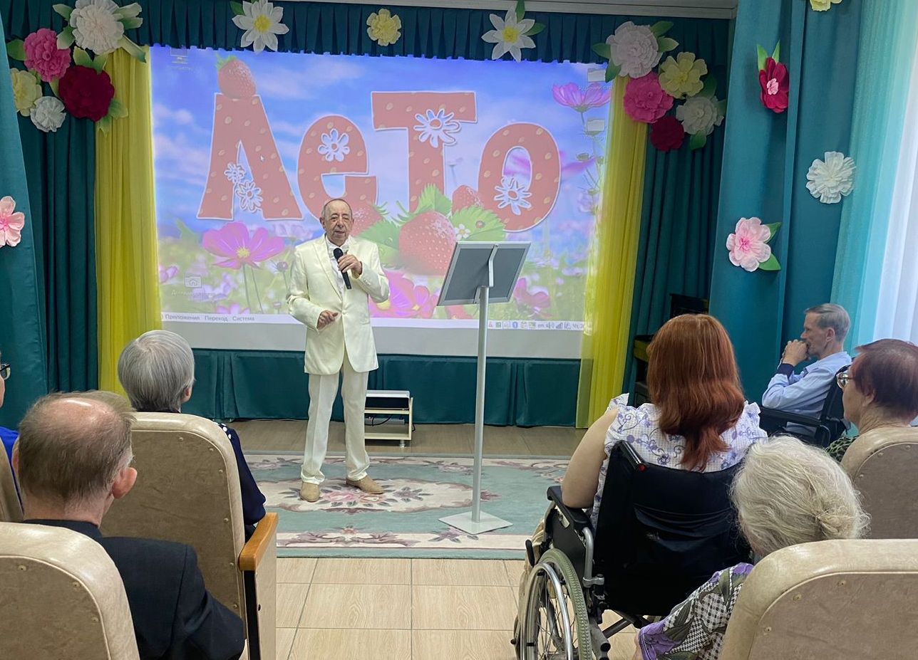 Вот оно долгожданное лето – уже на пороге! И в преддверии самого яркого, самого красочного, самого тёплого времени года в Вязниковском Пансионате состоялся концерт «Навстречу лету!». Концертная программа была такой же яркой и разнообразной. Своим творчеством зрителей радовали серебряные волонтёры Пансионата, члены клуба добровольческой деятельности «ДоброSTAR» - участники вокально-музыкального кружка «Гармония»: это сольные исполнители – Пётр Гаврилов, Светлана Павлова, Пётр Гольденберг, Наталья Идрисова, Валерий Зариньш, Лидия Обухова, трио «Антоновки» и музыкальный мужской квартет «ЗаВАЛИНКА». Звучали лирические и задорные песни, стихи, весёлые частушки, инструментальные композиции. Среди музыкальных номеров – «Выйду на улицу», «Лето кастаньет», «Милая моя, солнышко лесное», «На дальней станции, «Ивушки», «Солнечное лето» и др.