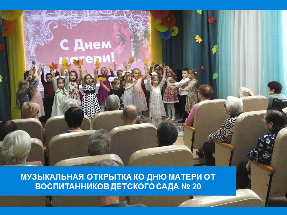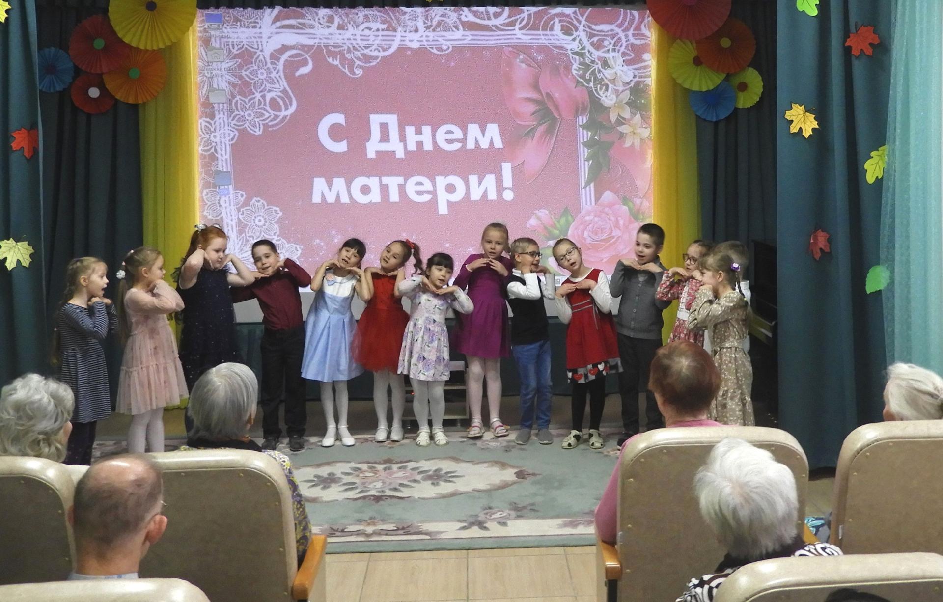Такой концерт жителям Вязниковского Пансионата подарили воспитанники детского сада № 20. Свою поздравительную музыкальную открытку дети наполнили замечательными детскими песнями, танцами, стихами, которые дополняли красивые костюмы. Всё это трогало души зрителей. На протяжении всего праздника звучали многочисленные слова благодарности, восхищения, уважения и любви в адрес любимых мам и бабушек. Праздничный концерт прошёл в необыкновенной атмосфере домашнего уюта и теплоты, а также подарил всем множество приятных впечатлений. В завершении дети подарили бабушкам воздушные шарики и поделки - сердечки, сделанные своими руками.