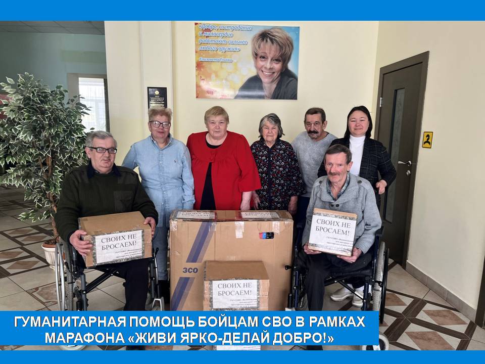 Жители и сотрудники Вязниковского Пансионата продолжают принимать участие в областном благотворительном марафоне «Живи ярко – делай добро!», посвященном Дню памяти Е.П.Глинки. В объявленный год Защитника Отечества основным направлением марафона стала поддержка участников СВО. Пока специалисты и сотрудники проводили сбор необходимых вещей и продовольствия, жители трудились не покладая рук: инвалид по зрению – жительница пансионата Смирнова Жанна Владимировна связала для бойцов тёплые носочки; участники творческой студии рукоделия «Созвездие» изготовили маскировочные нашлемники; все желающие написали и вложили в посылку письма с теплыми словами поддержки.