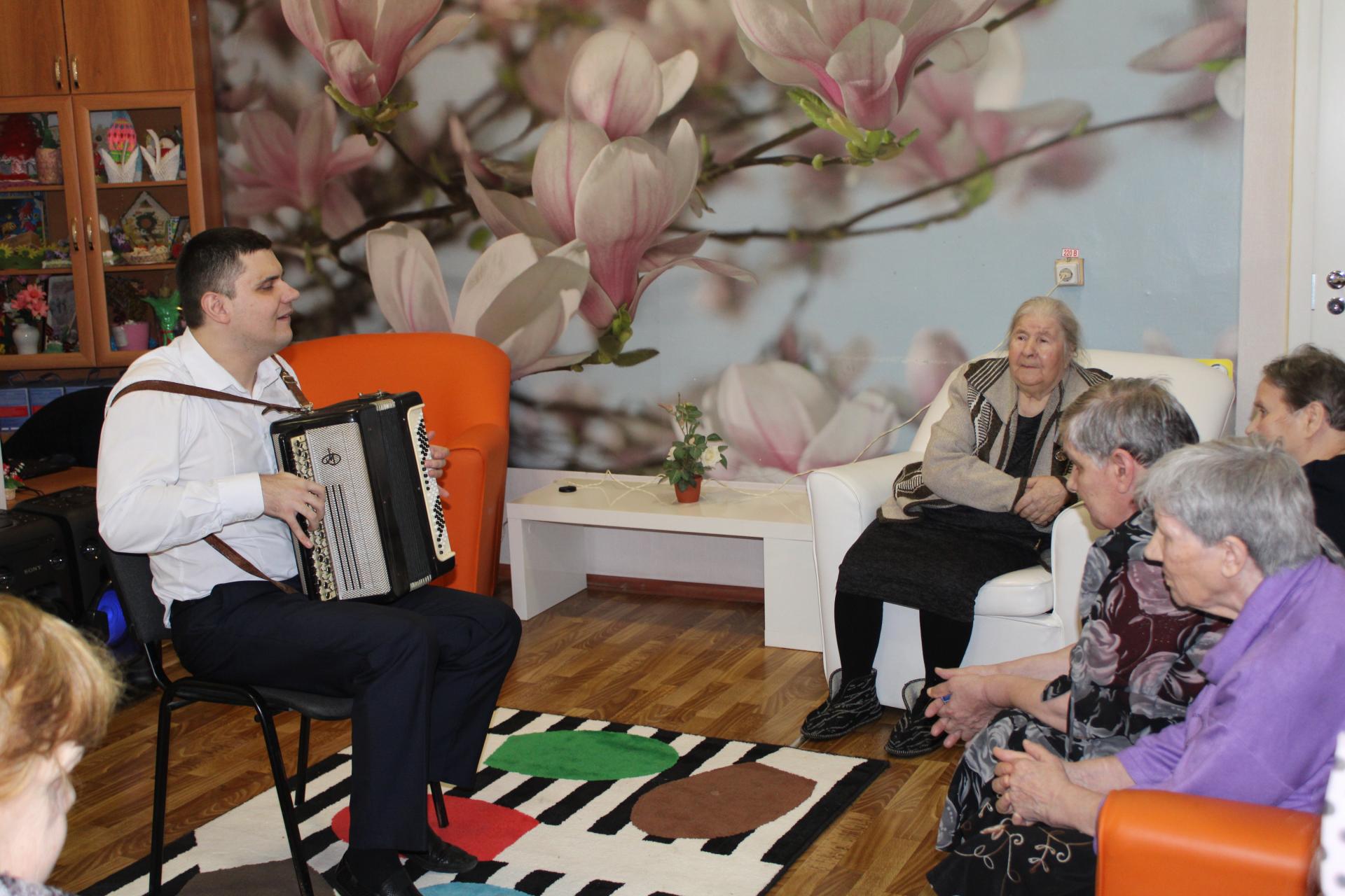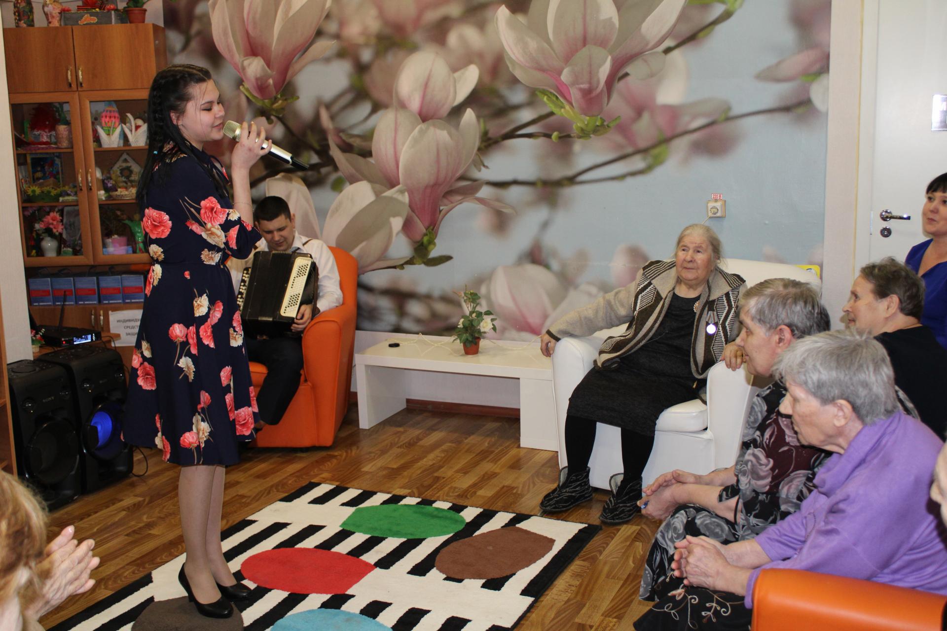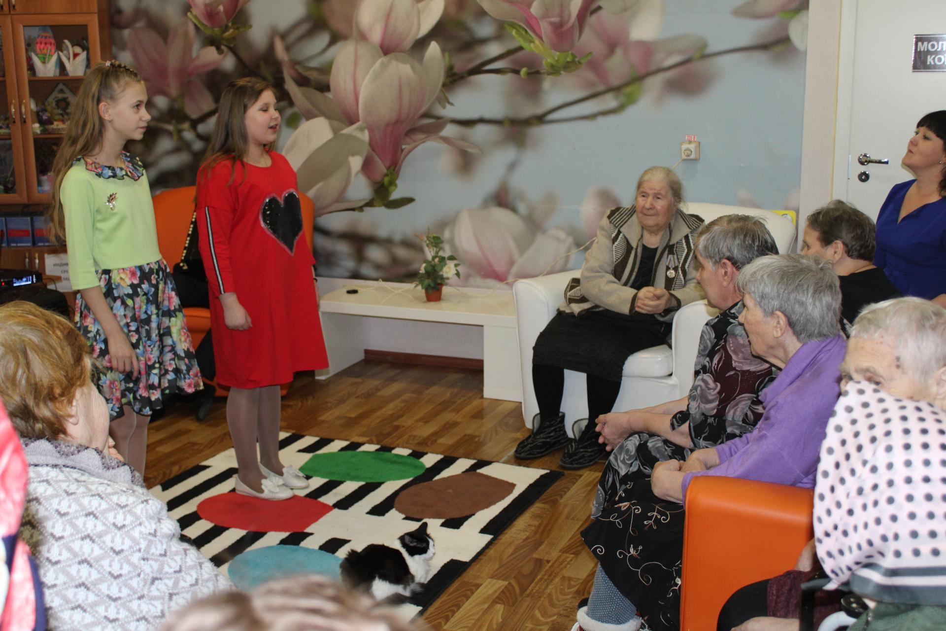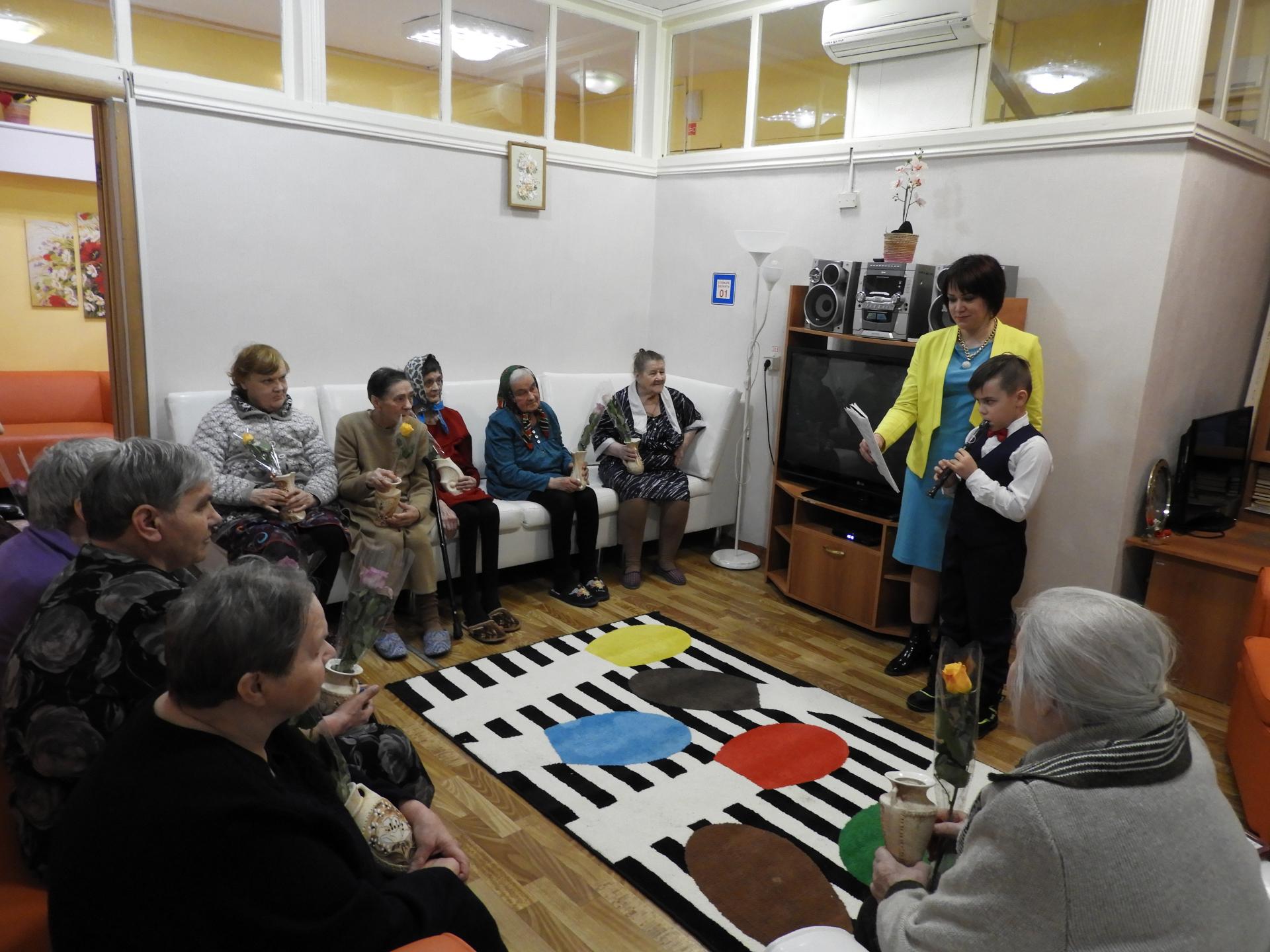 Международный женский день в отделении милосердия для граждан пожилого возраста и инвалидов с.Сарыево прошел под знаком почитания, любви и уважения к женщине. Со словами глубокого уважения и самыми теплыми пожеланиями к присутствующим женщинам обратилась директор Вязниковского Пансионата им. Е.П.Глинки Е.А. Сергеева. Всем женщинам были вручены цветы и вазы. После торжественной церемонии состоялся праздничный концерт волонтеров подростково-молодежного клуба « Тимуровец» и ребят молодежного объединения клуба «Чайка». Аплодисменты, слова любви, счастливые улыбки и радости моменты! Именно такими словами, вкратце хочется рассказать о концертной программе, в которой звучали красивые стихи , веселые песни и частушки-хохмотушки. Атмосфера этой встречи была наполнена добротой и нежностью, теплотой и любовью. Праздничная программа стала отличным весенним подарком для женщин отделения.