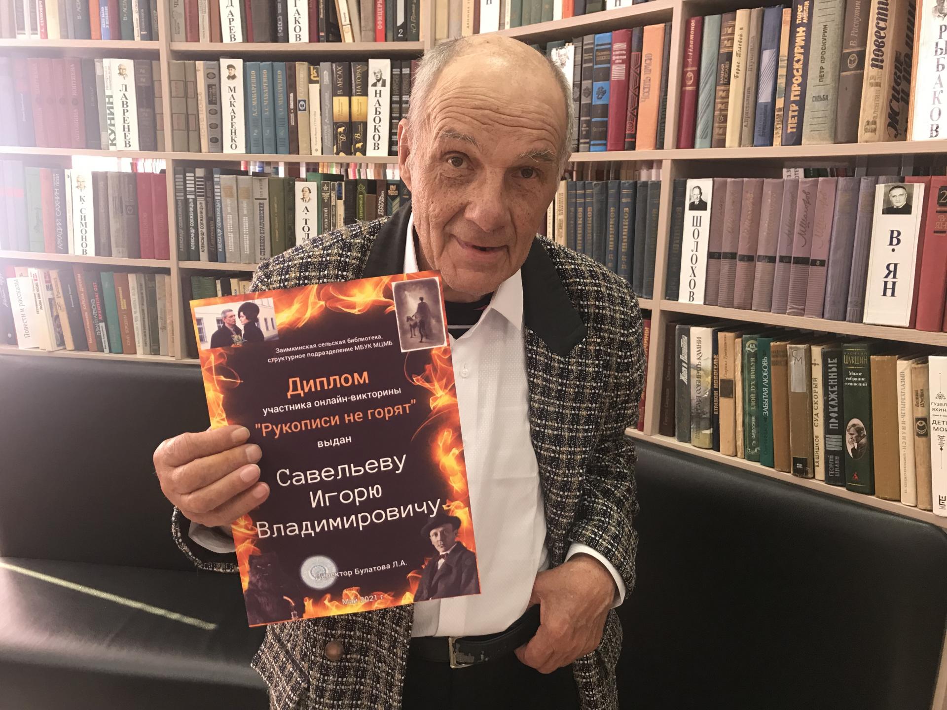 15 мая 1891 года, 130 лет назад, родился Михаил Булгаков — автор романов «Белая гвардия», «Мастер и Маргарита», повести «Собачье сердце», и других произведений, а также пьес и рассказов. К этой дате была приурочена онлайн - викторина «Рукописи не горят», а проверял свои знания персонажей и сюжетов романа «Мастер и Маргарита» житель Пансионата Савельев Игорь Владимирович и заслуженно был отмечен дипломом за участие. #ЗаимкаРБ #Онлайнигра #Онлайнвикторина #Булгаков #МастериМаргарита