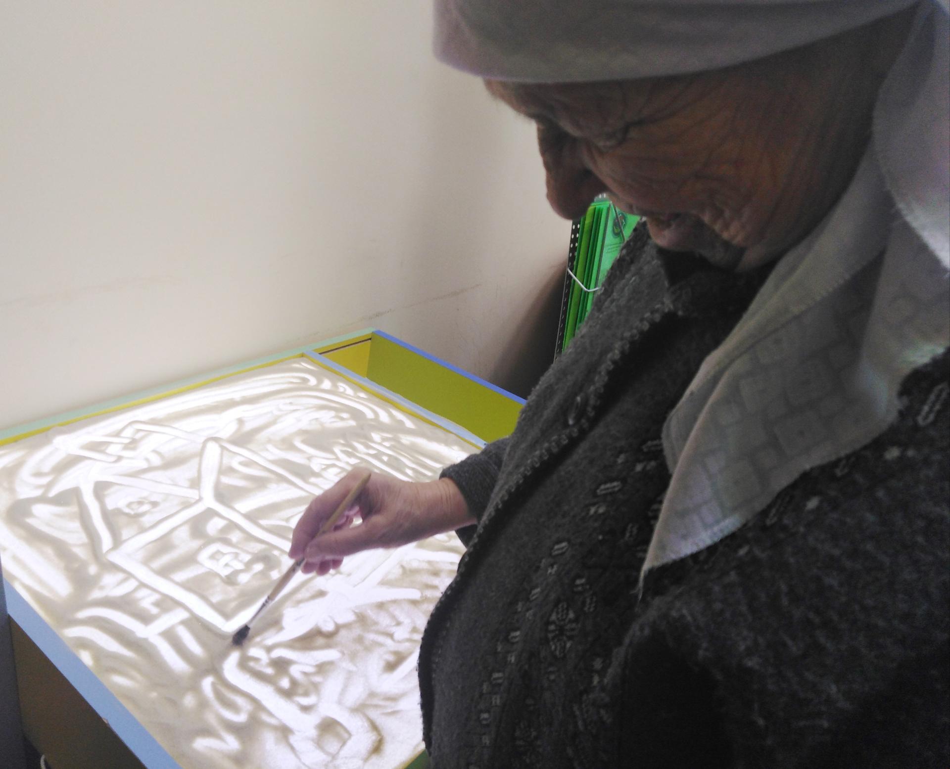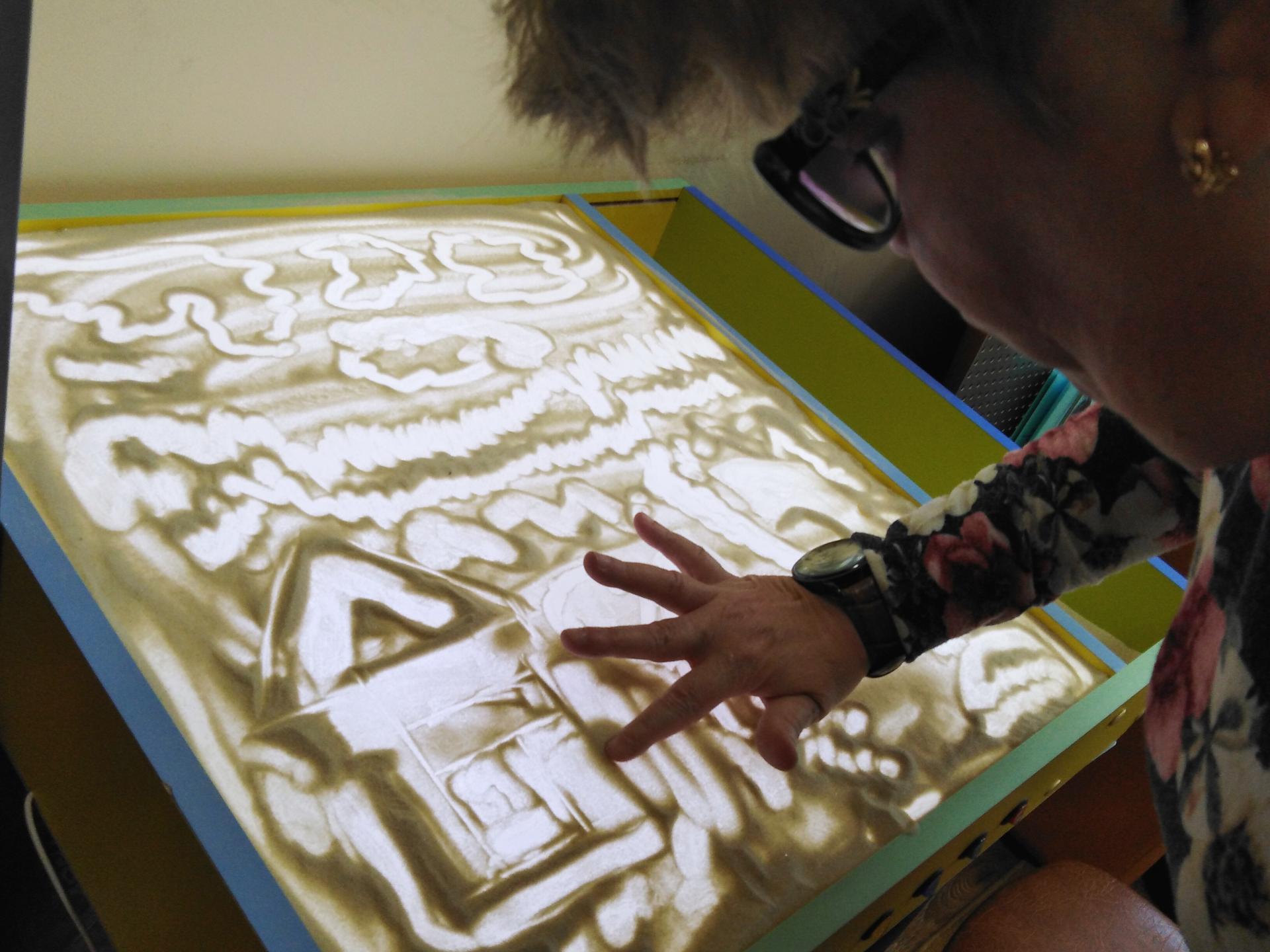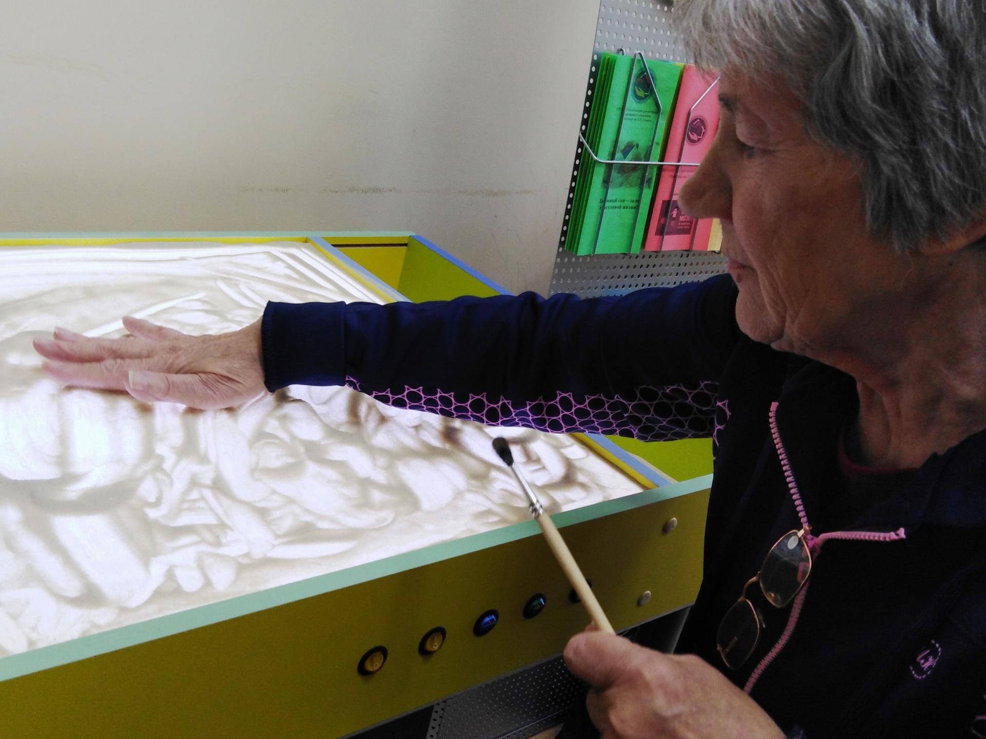 Любой человек способен выразить себя, свои чувства и свое состояние мелодией, звуком, словом, движением, рисунком. Случается так, что для некоторых это единственный способ дать миру знать о себе. Песочная терапия предполагает корректировку невротических нарушений, профилактику конфликтности, замкнутости, развитие зрительно-пространственной ориентировки, концентрацию внимания, памяти, развитие мышления и воображения. Благодаря песочной терапии, получатели социальных услуг достигли состояния психоэмоционального комфорта, преодолели коммуникативные барьеры, сняли напряжение, посредством включения различных видов техник работы с песком, избавились от страхов, переживаний, повышенной тревожности. С улыбкой на лице, радостью в глазах и приливом положительных эмоций каждый из участников покидал кабинет психолога.