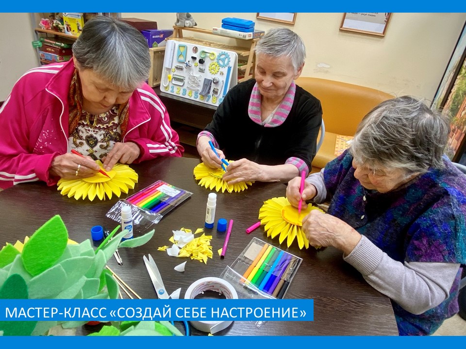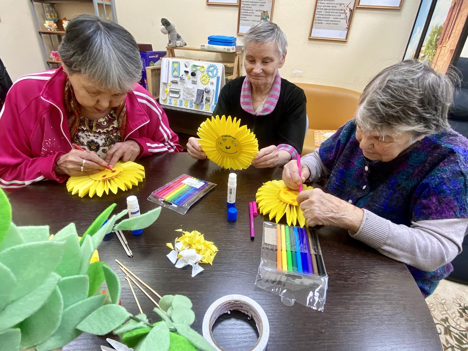 Потребность в творческом самовыражении заложена в каждом из нас, а найти выход креативности, придать ей форму и смысл помогают методы арт-терапии. Участники смастерили из цветной бумаги солнышко, которое напоминает нам о прекрасных летних днях, когда светло, тепло и беззаботно. Воспоминания о солнышке заполняют наше сердце радостью и ощущением счастья. Оно всегда дарит бодрость и вселяет надежду.
