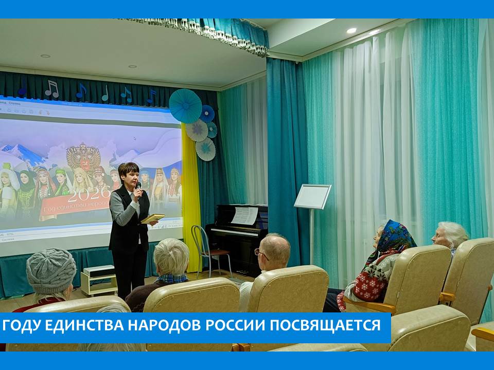 В рамках Года Единства народов России в пансионате прошел историко-документальный час «Мы живем в России». В рамках клуба «Документальная среда» был показан фильм «Малые народы большой страны. Камчатский край», который рассказывает о жизни и культуре коренных народов далёкой и удивительной Камчатки: коряков, чукчей, ительменов, эвенов и алеутов. Тема Русского Севера значима так же в творчестве многих писателей и поэтов, а также в исследованиях фольклора этого края. Некоторые книги были представлены на мероприятии.