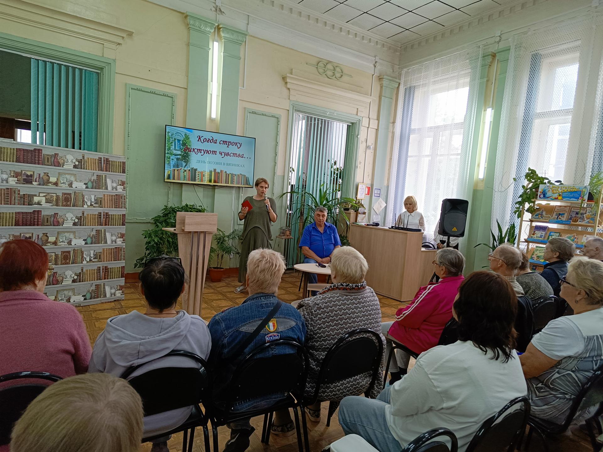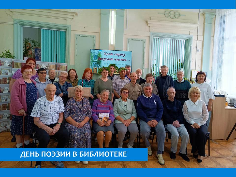 Сегодня жители пансионата посетили праздник поэзии в библиотечном центре «Интеллект», где у всех участников вечера как подобает празднику, было поэтическое лирическое настроение. Поэзия как музыка души лилась из уст поэтов и чтецов. Библиотекари рассказали участникам о цели праздника, о том, что поэзия — это одно из самых гениальных достижений человечества. Изливать свои чувства в стихотворной форме, запечатлевать в рифме свое мироощущение, мечтать о будущем и вспоминать прошлое, одновременно обращаясь к миллионам и оставаясь при этом наедине с собой, — на это способна только поэзия!