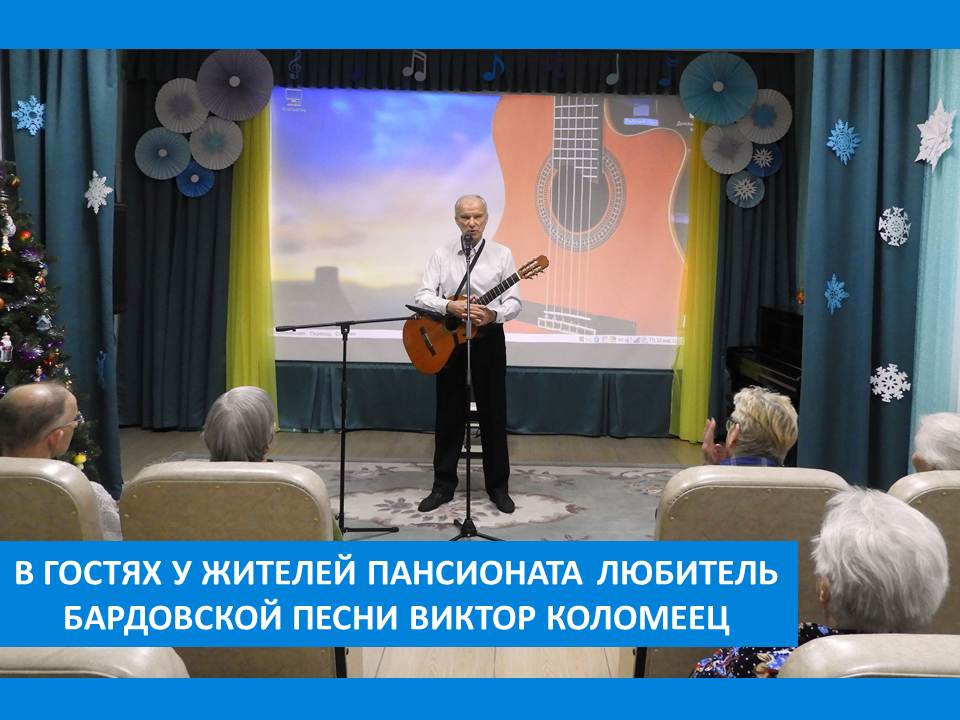 С историей и развитием такого направления жителей Вязниковского Пансионата познакомил гость, впервые посетивший Пансионат, любитель авторской (бардовской) песни Виктор Коломеец. Он является истинным поклонником и пропагандистом этого направления. Рассказывая историю, тут же обращались к песням, а самым известным зрители, конечно же, подпевали. Вместе вспомнили основоположников авторской песни – Булата Окуджаву, Юрия Визбора, Владимира Высоцкого.