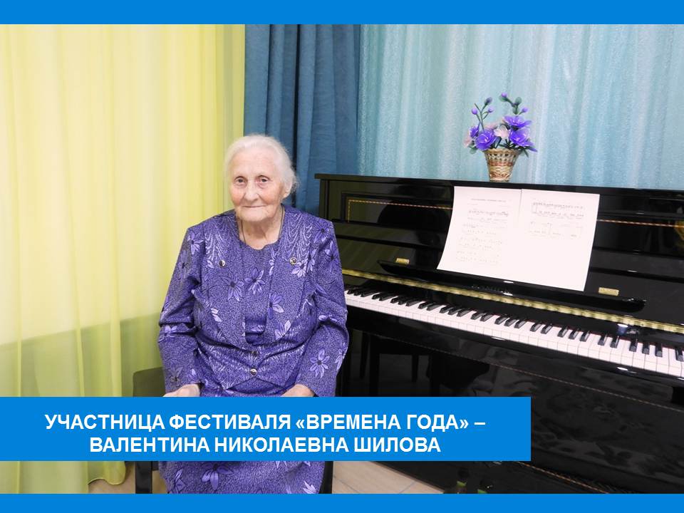 Жительница Пансионата Валентина Николаевна Шилова принимает участие в фестивале «Времена года» (осенний творческий этап «Листопад талантов), который проходит в рамках проекта «Активное долголетие», организованный домом культуры пос. Дорохово (Московская область). Валентине Николаевне 91 год и она пример активного долголетия: постоянный посетитель культурно-досуговых мероприятий, добродушный и отзывчивый человек. В фестивале принимает участие впервые, и мы желаем ей удачи, не смотря на то, что она уже молодец!