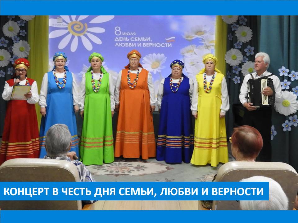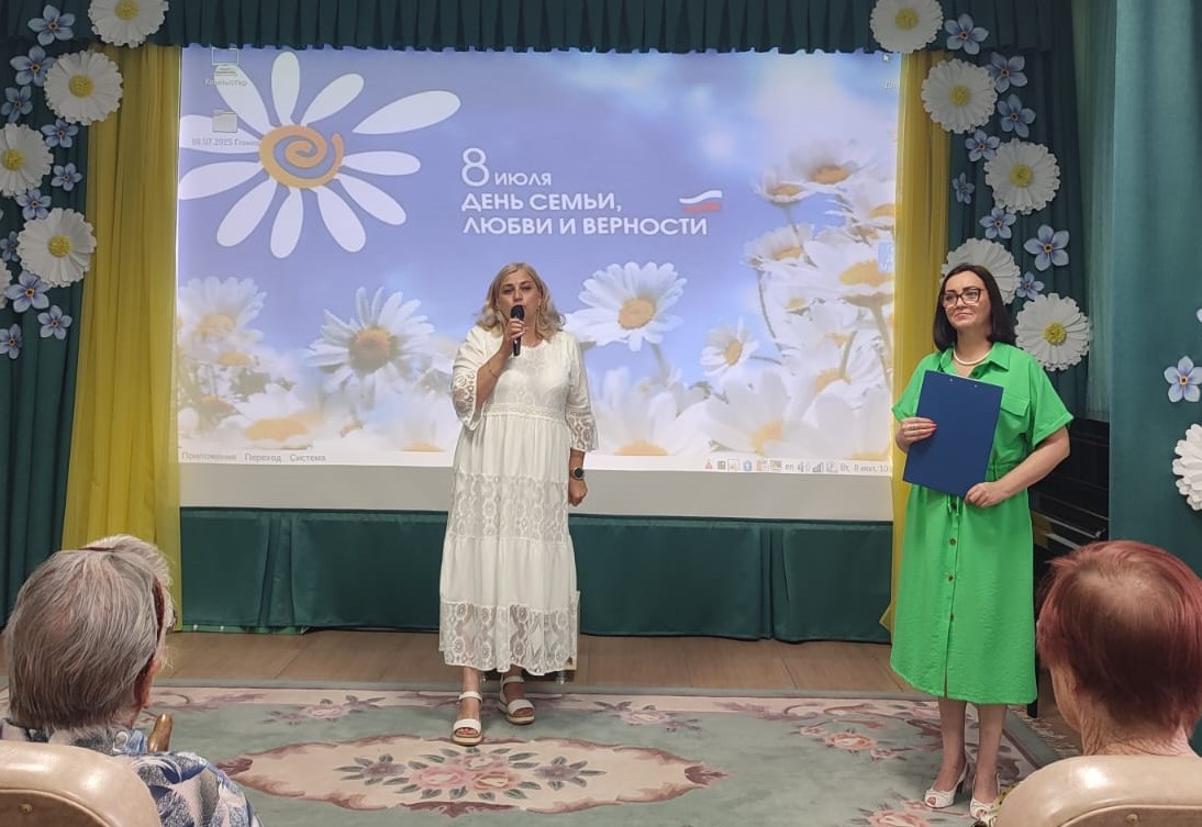В Вязниковском Пансионате День семьи, любви и верности отметили в кругу гостей-артистов из Станковского сельского клуба. В самом начале прозвучал «Гимн семье» и со словами поздравления в адрес всей большой «пансионатовской» семьи обратилась директор Е.Е. Самойлова, желая всем крепкого здоровья, благополучия, тепла, добра и мирного неба.