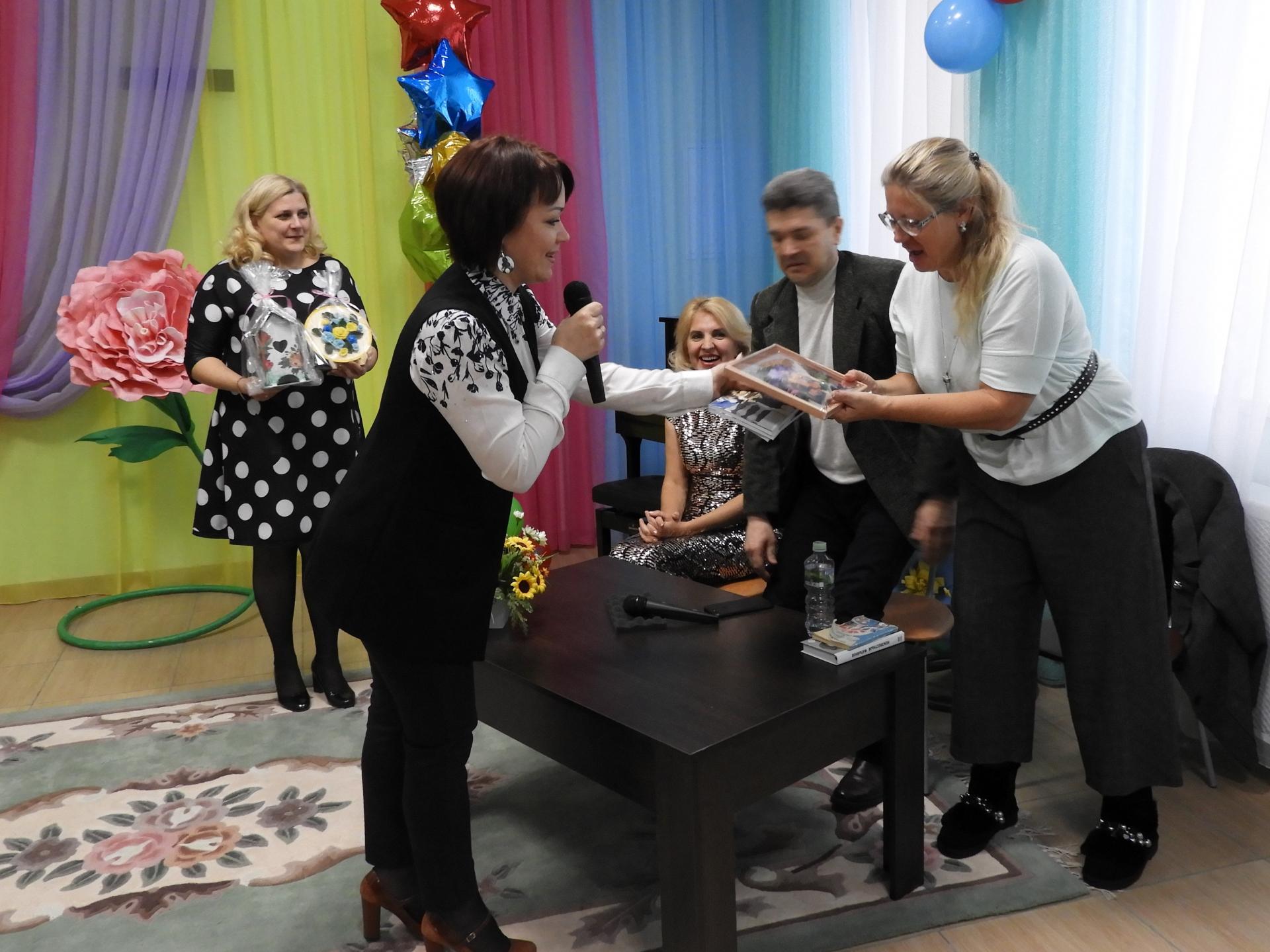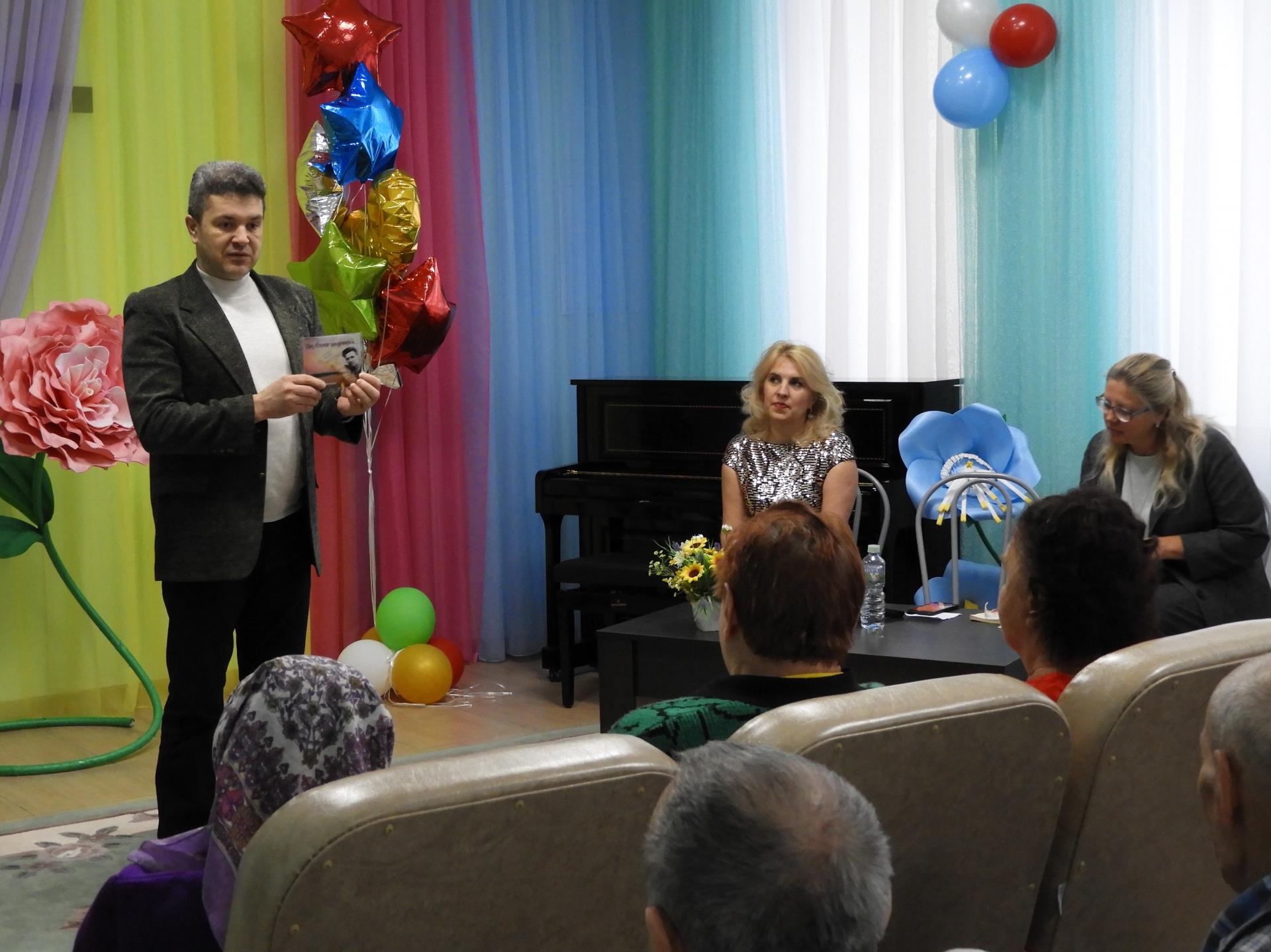 В завершении мероприятия всем гостям были преподнесены сувениры, сделанные серебряными волонтёрами в творческой мастерской, биографическая книга жителя Пансионата А.Н. Грешнова «Не сдаюсь» и музыкальный подарок, автором которого является творческий союз Фатьянова и Мокроусова – «Когда весна придёт, не знаю».