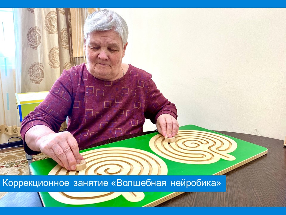 Психологом пансионата  было проведено очередное индивидуальное коррекционное занятие с применением комплекса межполушарных досок, направленных на развитие синхронной работы полушарий мозга. И если для мышц существует огромное количество упражнений, то для мозга специально разработана нейробика – это именно то, что позволит мозгу быть в отличной форме.